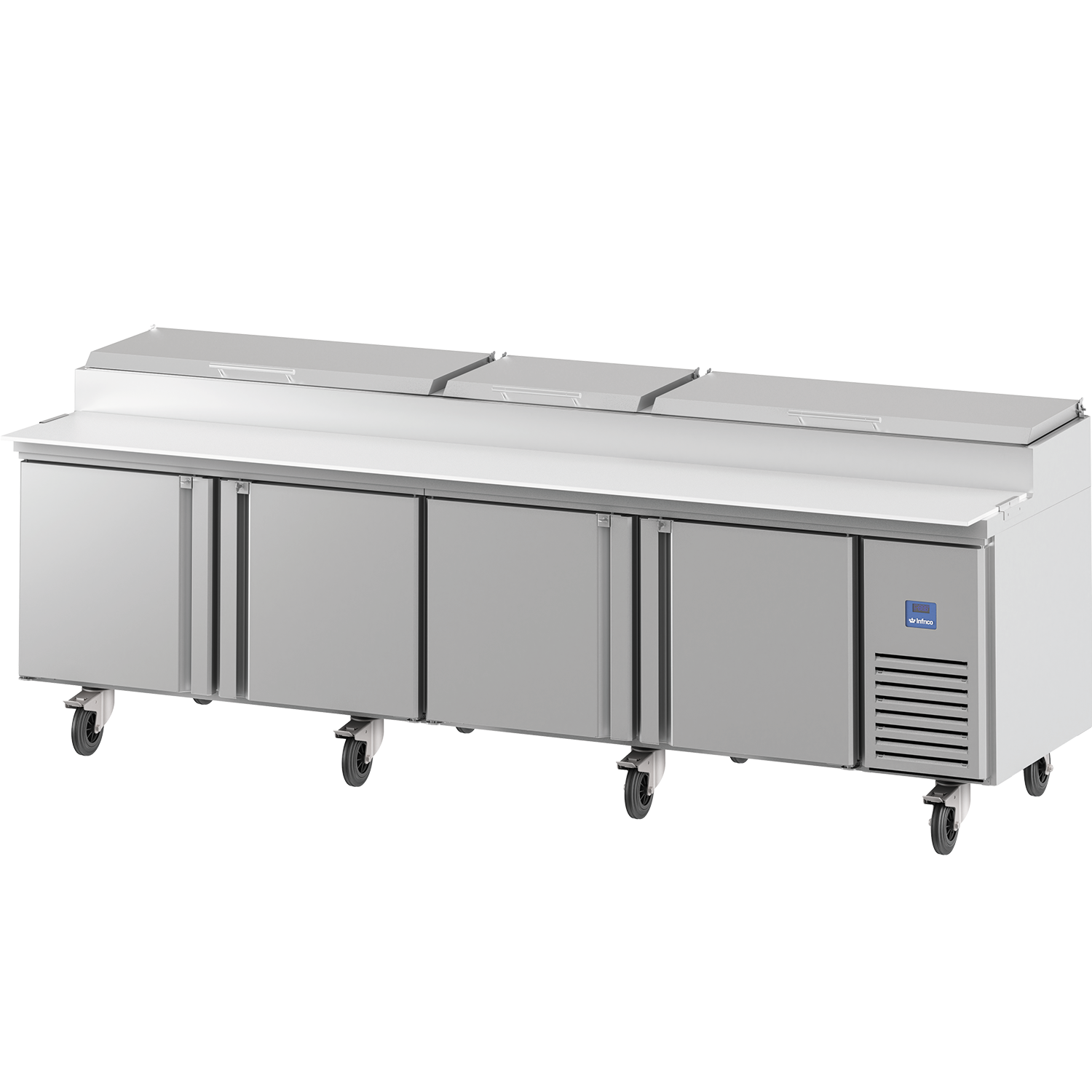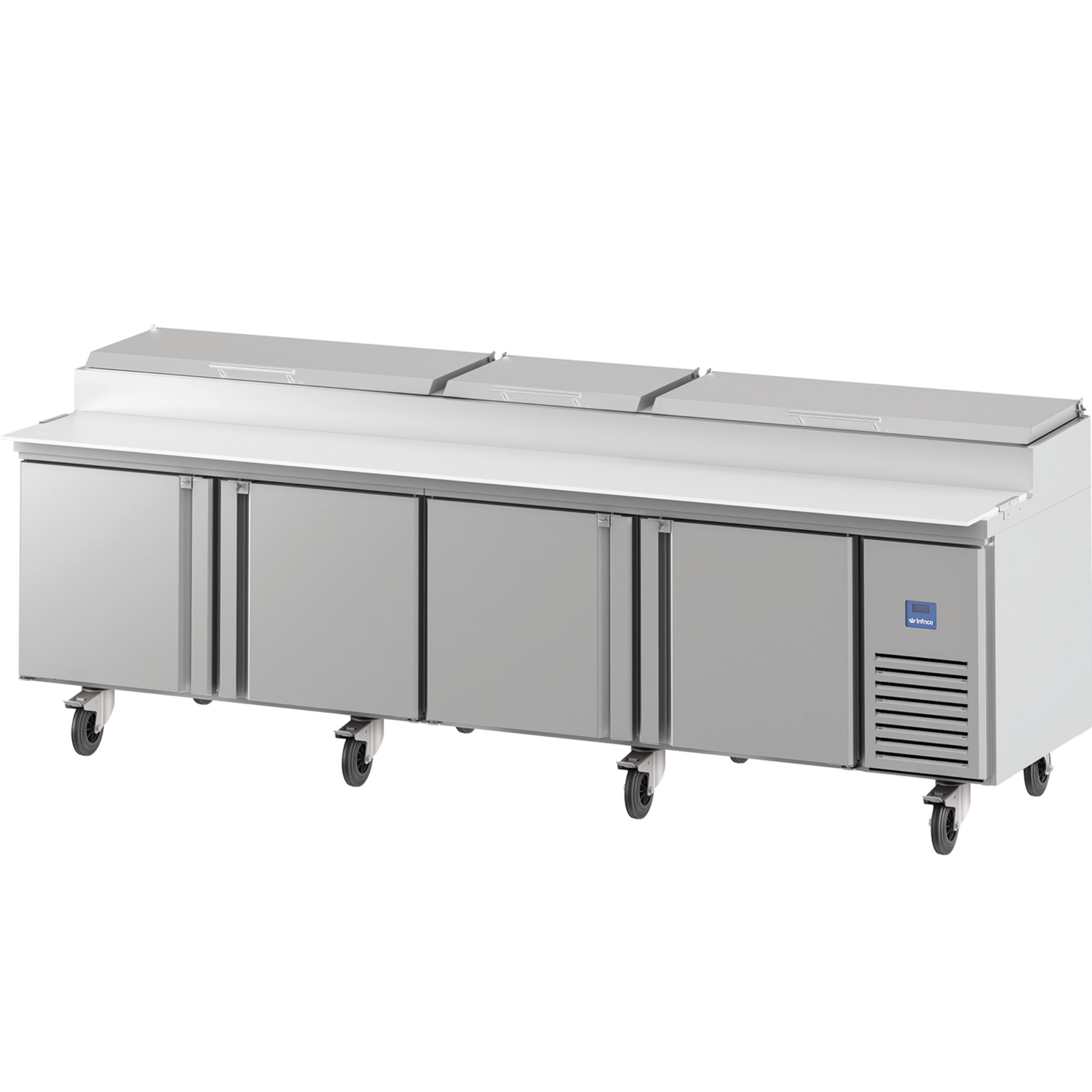 Infrico MR 119 EN (MR119EN) is a heavy-duty refrigerated salad and pizza cooling table from the American line, designed for fast-paced pizza and salad prep tables in professional kitchens. With a generous footprint of W 3030 x D 830 x H 1106 mm, it gives you a spacious prep-and-hold station that suits restaurants, takeaways and hotel kitchens across Ireland.