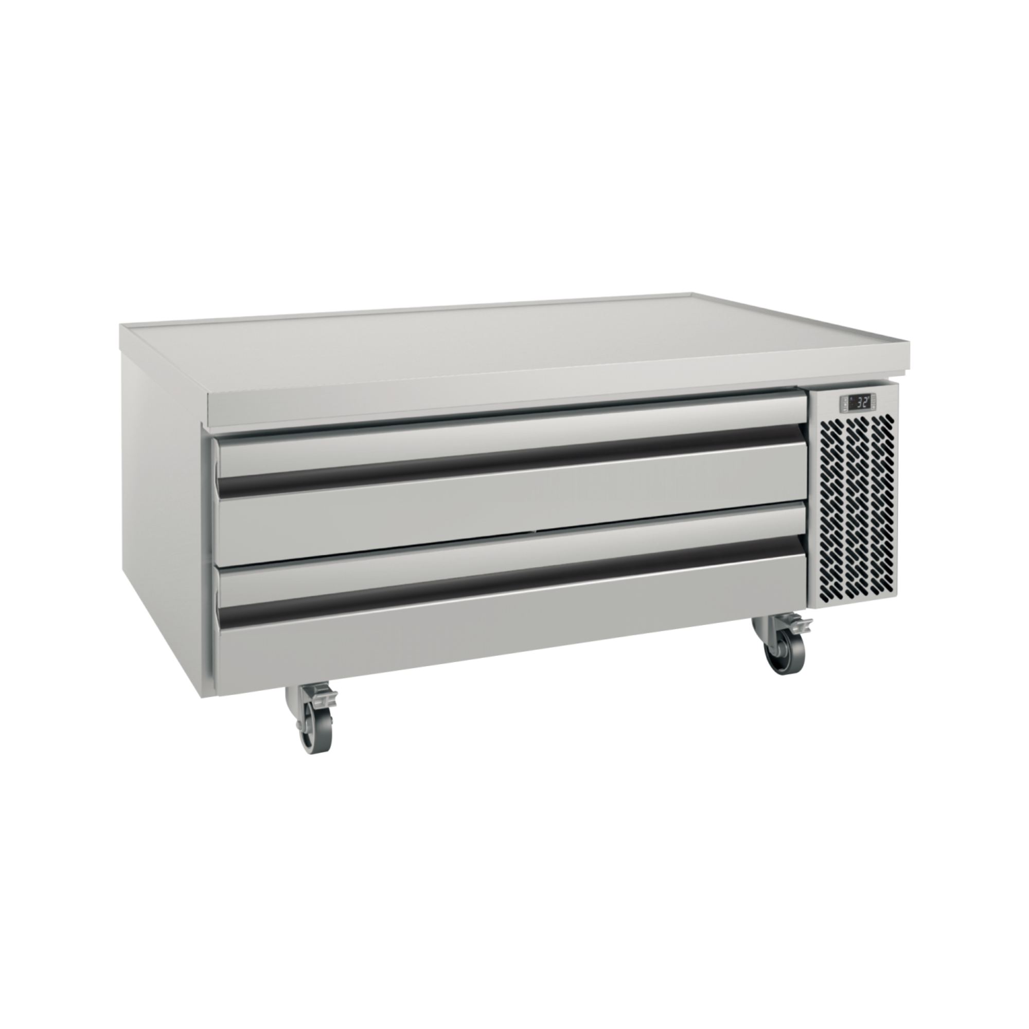 - Removable condensing unit, accessible via the side panel for easier maintenance