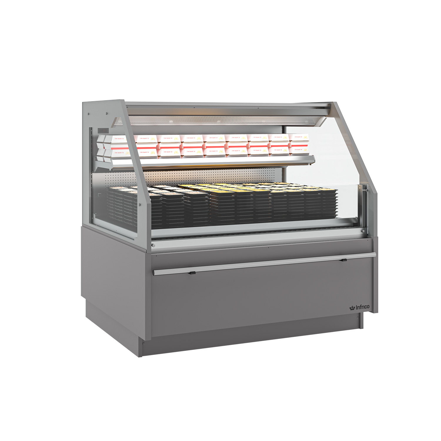Infrico SVT09 HT (SVT09HT) is a COMPACT SVT supermarket case built for professional hot food presentation in busy service areas. Designed as a semi‑compact hot display, it combines a straight, fixed front glass panel with panoramic side viewing, making it well suited to cafés, takeaways, hotel carveries and deli counters in Ireland where visibility drives quick sales.