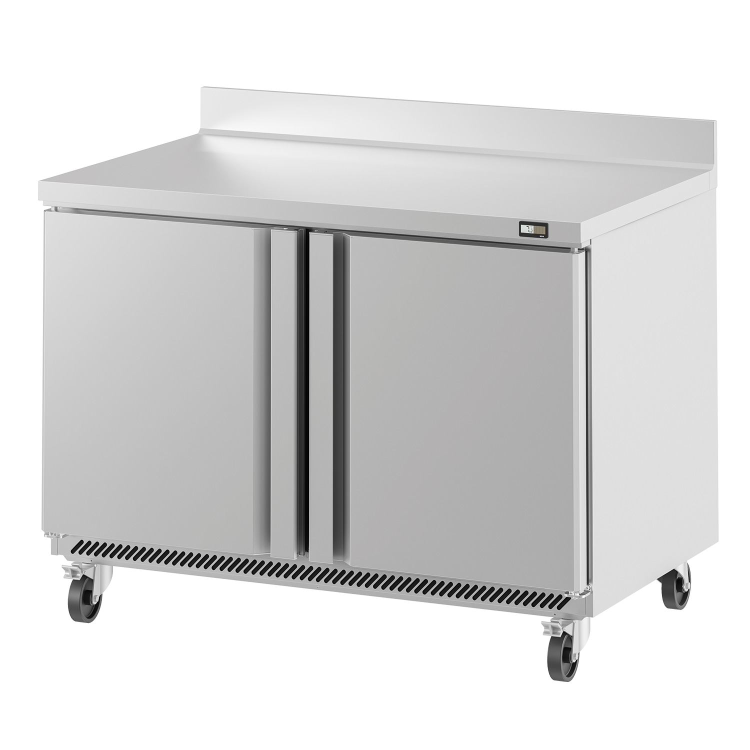 Built for daily commercial use, it features an AISI 304 stainless steel worktop with AISI 430 stainless steel sides, paired with a fully injected, compact cabinet for a solid feel in demanding environments. Mobility is straightforward thanks to 100 mm castors, with brakes on the front set to keep the unit steady during prep.