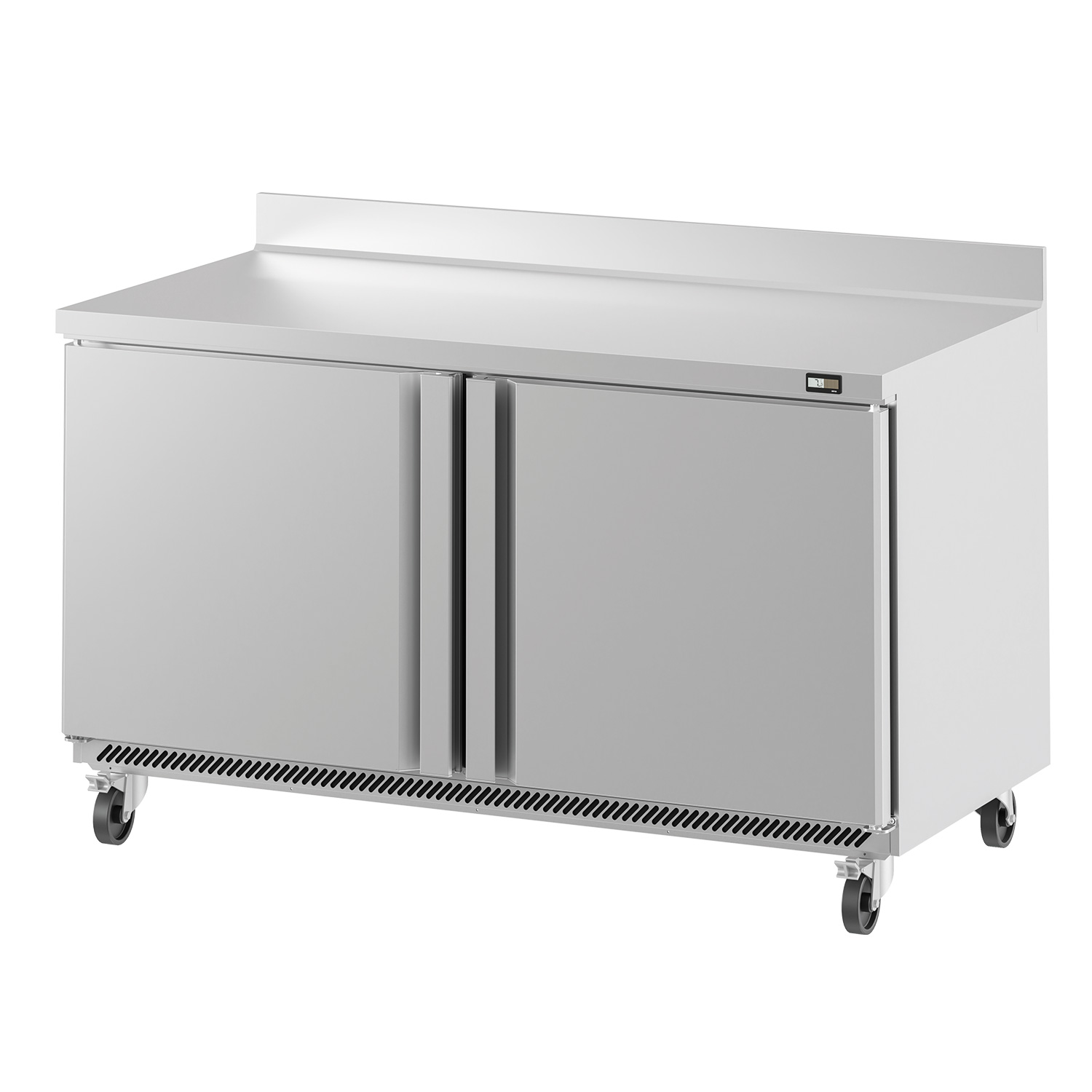 Build quality is geared for professional environments, with an AISI 304 stainless steel worktop and AISI 430 stainless steel sides, plus a fully injected compact structure for a solid, easy-clean unit. For flexibility during deep cleans or layout changes, it sits on 100 mm castors, with brakes fitted to the front set.