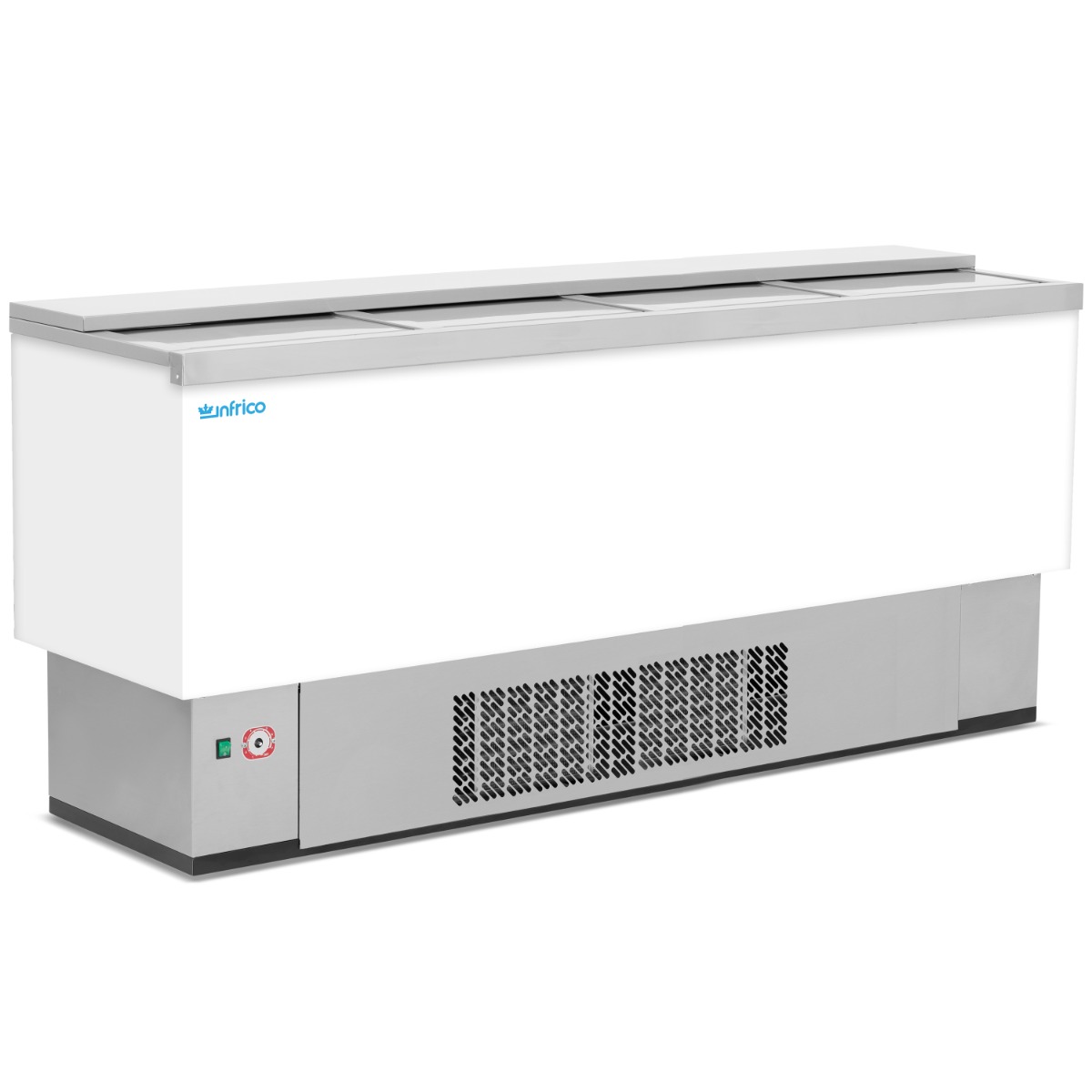 • Check iconWhite laminated exteriorGalvanized steel interiorBottle capacities based on 20cl bottlesFixed drain option (please note a drain tube exit is in the base of themachine, the installer should make provision for connection to a drain outlet or adequate container) Brand: INFRICO Size (H x W x D): 880 x 1954 x 550 Weight: 106.0 Finish: White Controller: Manual Thermostat Refrigerant: R290 Climate Class: 4 Defrost: Manual Temp Range: +3C / +6C Cooling: Static Power Consumption (W): 180W Gross Capacity: 360 Bottles / 415 ltr