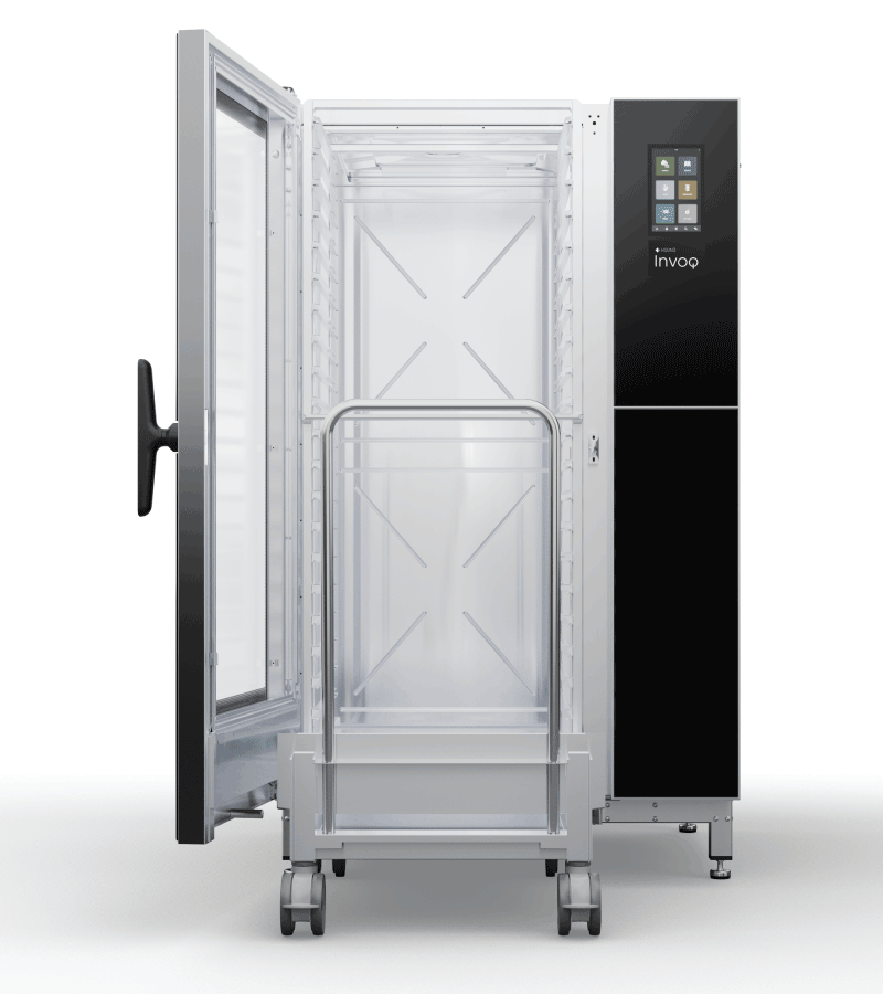 The Invoq Combi 20-2/1 GN Combination Oven is perfect for commercial kitchens. This oven provides a wide range of functions, from baking to steaming, roasting, and grilling. It's easy to operate and maintain, with precise temperature controls, a convenient timer, and a large capacity. Its stainless steel construction ensures durability and reliability, making it an ideal choice for any kitchen.