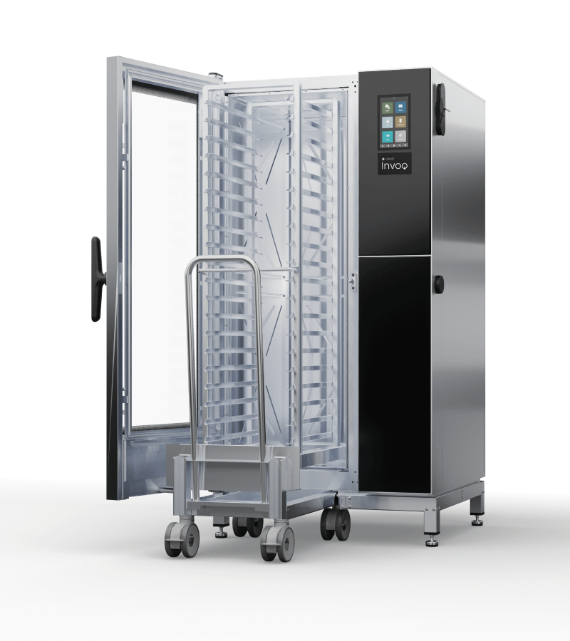 The Invoq Hybrid 20-1/1 GN Combination Oven is an innovative, multi-function oven designed to optimize kitchen space and provide a wide range of cooking options. It features a powerful steam generator for precise cooking, an intuitive touchscreen control panel for easy operation, and a rotating shelf for easy access. This oven is ideal for commercial kitchens, bakeries, restaurants, and more.