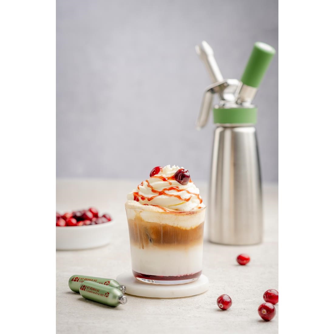Top your desserts and beverages to perfection with iSi Professional ECO Series cream whipper charger bulbs - a sustainable alternative to standard charger bulbs for your kitchen. Each of the 24 chargers in this pack contains 8.4g of pure N2O, suitable for cream whippers, ensuring consistent performance for various culinary applications.