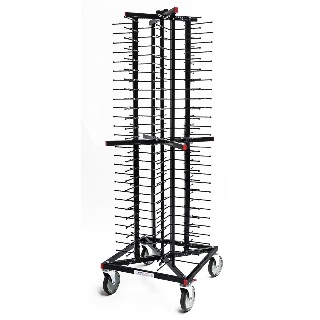 Easily move the vertical plate tower in minimal time to storage, banquet, or dishwashing areas. Benefit from 20% less labor, 25% less serving time, and 30% more space. This model can store 104 plates.
