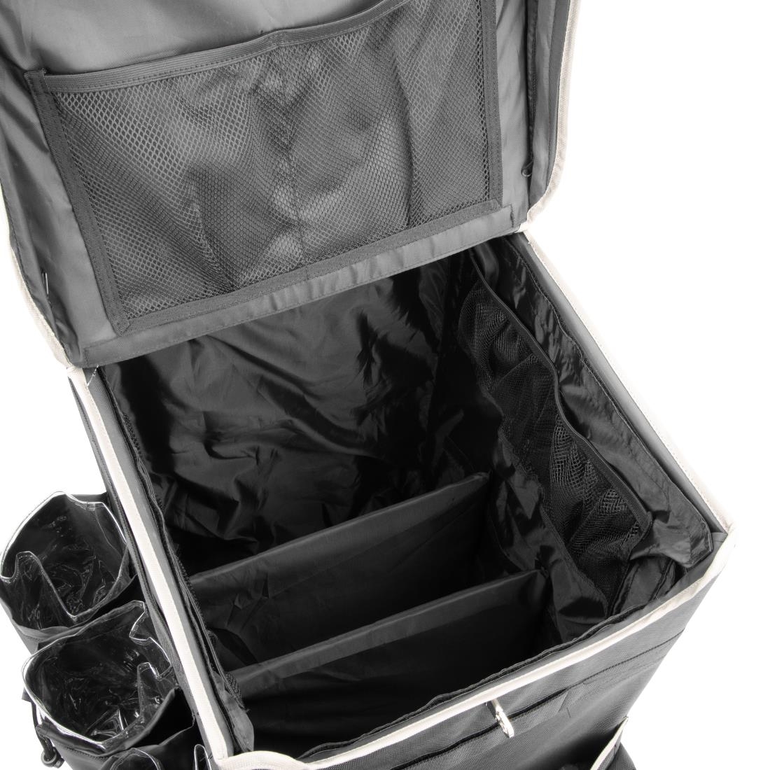Jantex's mobile housekeeping cart is designed for efficient maintenance of guest rooms, lobbies, public areas, and restrooms. It features external and internal pockets that provide ample space for cleaning sprays and cloths. The strong yet lightweight design includes a removable caddy and liquid-resistant exterior fabric for added reliability. Telescopic handles make maneuvering the housekeeping cart easy and reduce physical strain. Its compact size allows it to fit into rooms, eliminating the need to frequently enter and exit to retrieve cleaning supplies, and it can be easily stored away after use.
