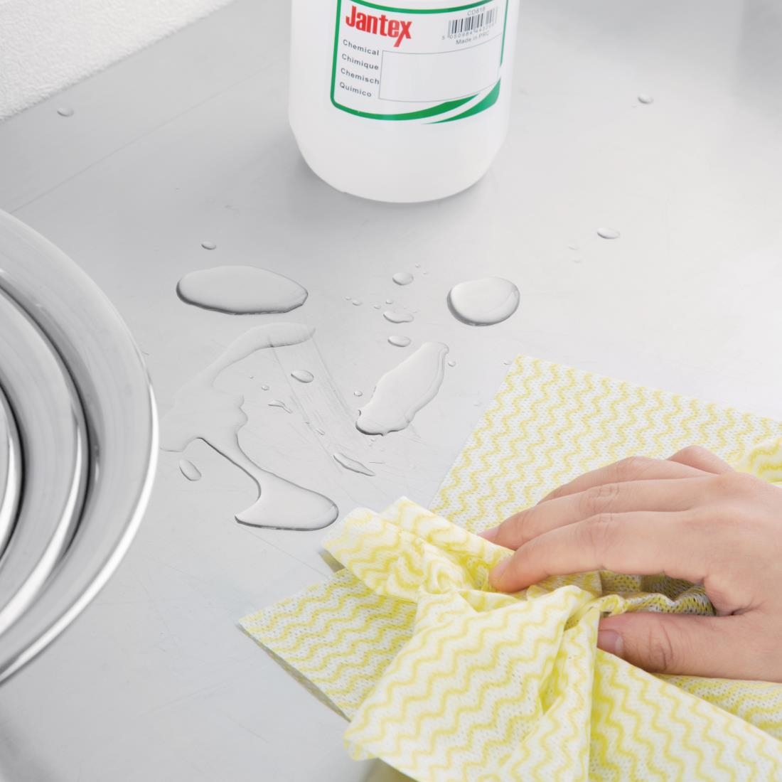 These yellow Jantex cleaning cloths are designed for any cleaning task and come on a roll of 100 for ultimate convenience. Available in four colors, the non-linting cloths are well-suited to a color-coded cleaning system, which helps to prevent the risk of cross-contamination. The main benefit of non-woven cloths such as these is that they dry rapidly and leave fewer fibers behind than alternatives, helping you achieve the perfect finish. Suitable for all catering and hospitality establishments.