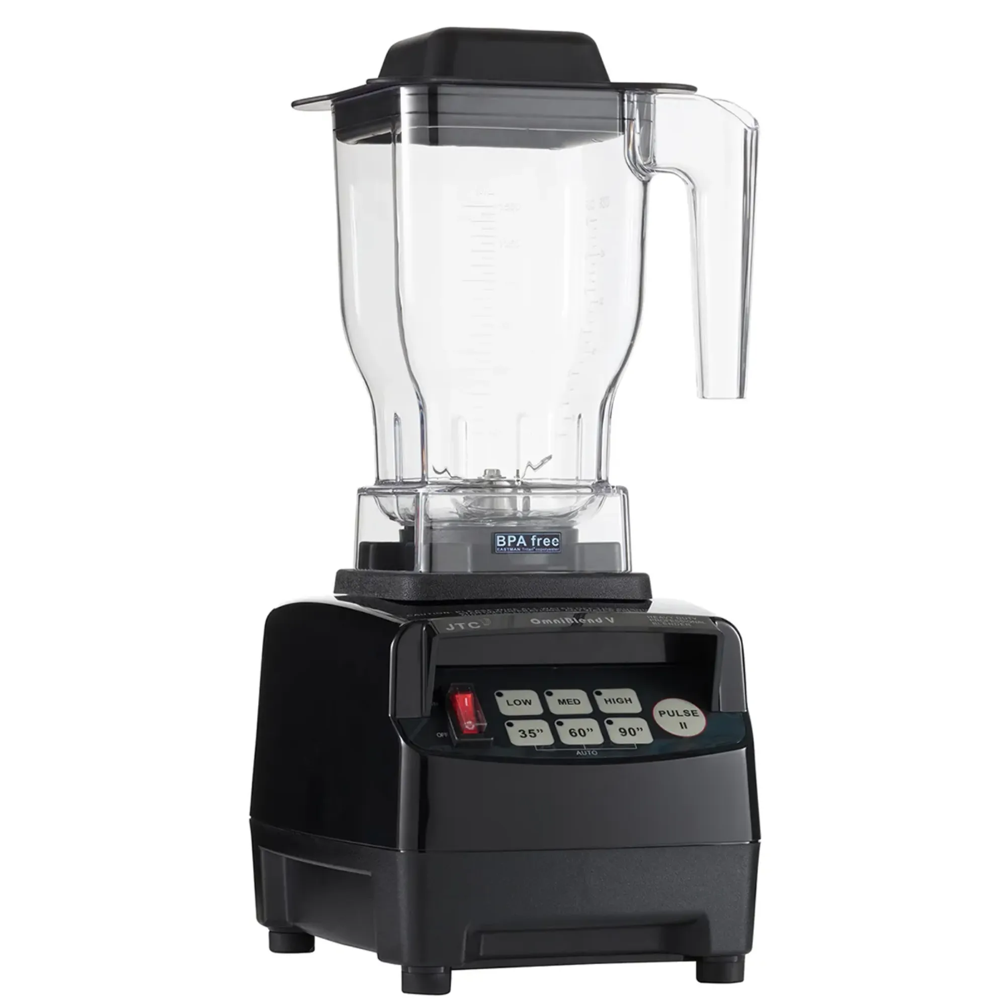 The JTC OmniBlend TM-800B V Commercial Kitchen Blender is the newest offering from JTC. The JTC OmniBlend V in black is a powerful blender with a purpose. It not only boasts a 3HP motor, but it also features seven simple one-touch 35, 60, and 90-second auto timers with high, medium, and low pulse buttons that allow you to accomplish specific tasks with ease and precision. Whether it's grinding grains in seconds or making a steaming hot soup, the JTC OmniBlend V is always ready to perform.