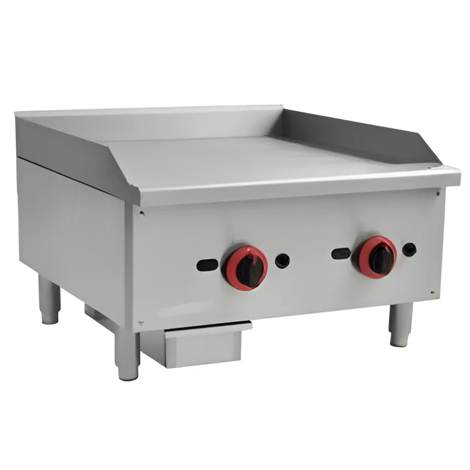 If you're looking for a commercial gas griddle for your establishment, then you've come to the right place. Whether you're looking for a small gas countertop griddle for your compact kitchen area or a model with a lot of grilling space, the Countertop Gas Griddle KKGG-24 with 2 Burners is the answer. You can even control multiple temperature dials that allow you to cook various foods at different temperatures on the same unit.