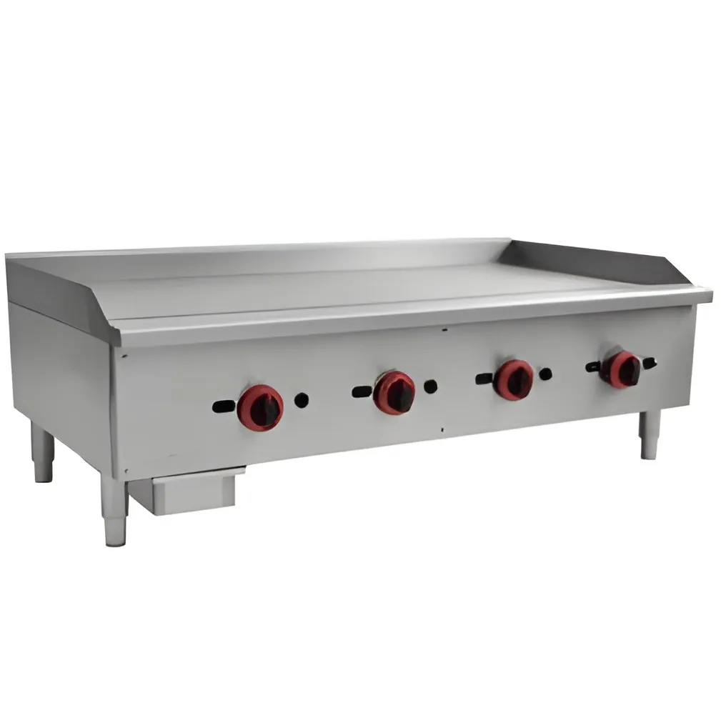 If you're looking for a commercial gas griddle for your establishment, then you've come to the right place. Whether you're looking for a small gas countertop griddle for your compact kitchen area or a model with a lot of grilling space, the Countertop Gas Griddle KKGG-48 with 4 Burners is the answer. You can even control multiple temperature dials that allow you to cook various foods at different temperatures on the same unit.