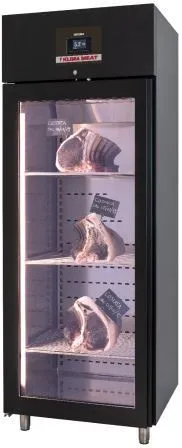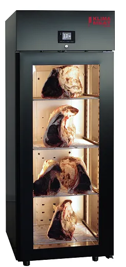 The Klima Food KME700PV is a Dry Ager meat maturing refrigerator, ideal for dry aging beef and other cuts of meat. By using the optional pH Control probe, it is possible to treat different cuts of meat for varying time settings, allowing for the assessment of maturation levels for each cut of meat.