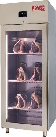 The Klima Food KME700PV is a Dry Ager meat maturing refrigerator, ideal for dry aging beef and other cuts of meat. By using the optional pH Control probe, it is possible to treat different cuts of meat for varying time settings, allowing for the assessment of maturation levels for each cut of meat.