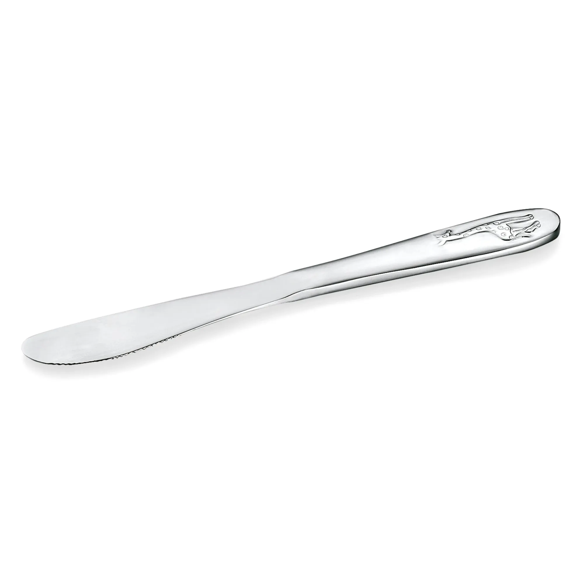 The children's knife features a delightful giraffe motif, making it an appealing addition to any child's cutlery set. Designed with safety and functionality in mind, this knife is perfect for young ones learning to handle utensils. The charming giraffe design adds a playful touch, encouraging children to enjoy mealtime. Crafted from high-quality materials, this knife ensures durability and ease of use, providing both parents and children with peace of mind. Ideal for everyday use, this children's knife is a practical and fun choice for any family.