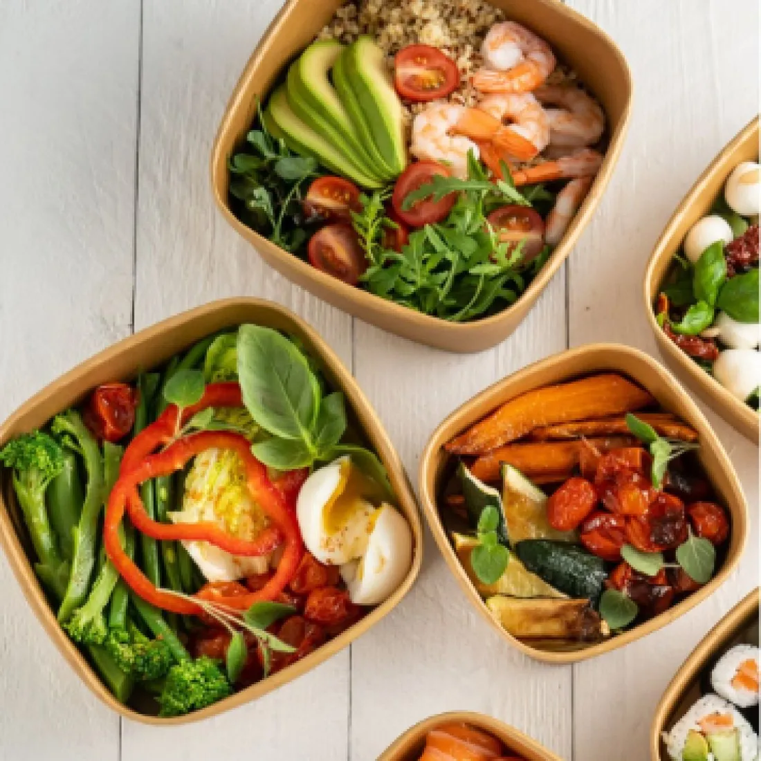 Kraft salad bowls are ideal for takeaway menus. Leakproof they can be used for sauce-based main courses and salads. A tight-fitting lid can retain heat and keep the contents fresh.