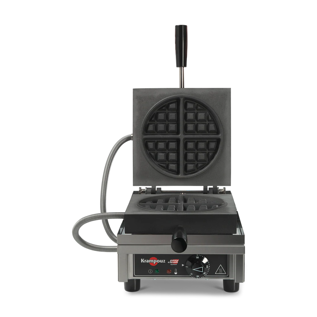 A single round electric waffle maker is an essential cookware item for any breakfast buffet, family-style diner, dining hall, or cafeteria.