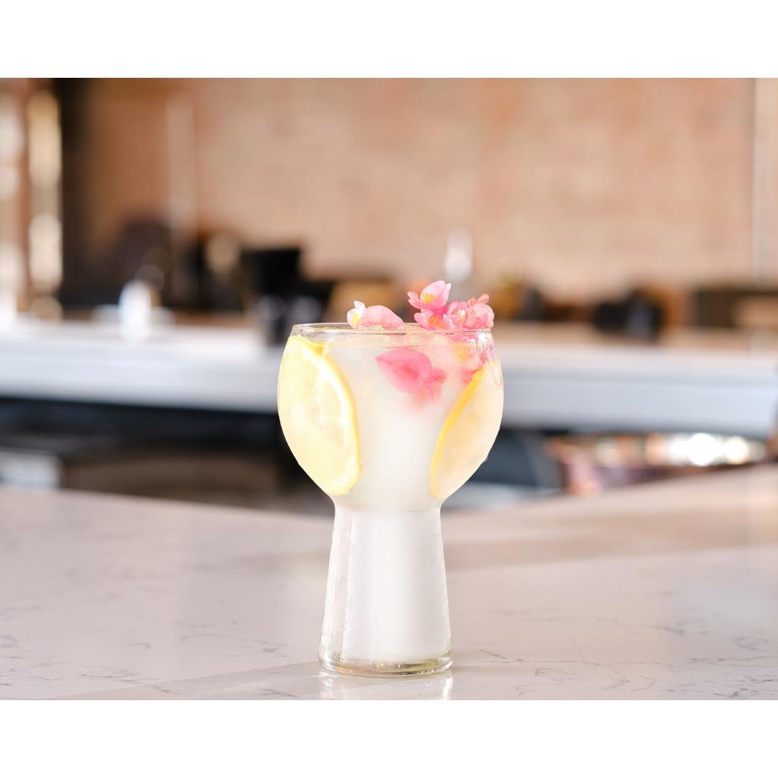 Libbey's Symbio collection offers a diverse range of silhouettes perfect for specialty cocktails and low or no-alcohol beverages. These Symbio gin goblets feature a playful design that makes it easy to create unique drink presentations. With their trendy, wide-stemmed silhouette, they are both stylish and sturdy. Plus, they come with the Safedge Rim Guarantee and are dishwasher-safe for convenient cleanup.
