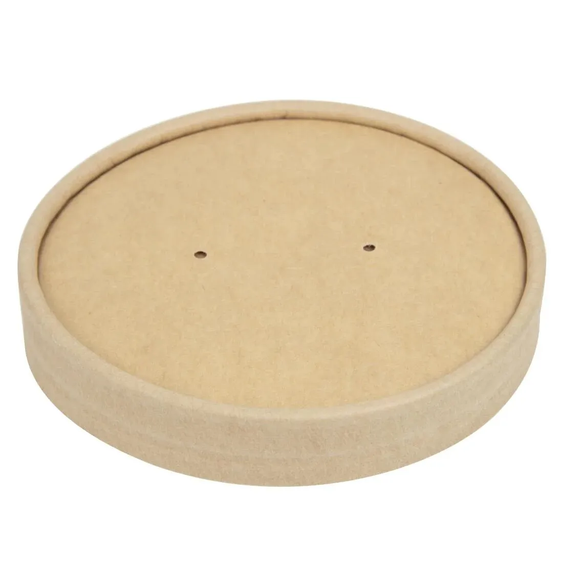 Warm up hot food and drink in the microwave safely with these recyclable kraft microwavable soup cup lids. As these lids are made with venting holes, they will stop steam from building up in your 16oz soup cups when heated in the microwave. This reduces the risk of the lid bursting open and causing messy and dangerous hot food explosions. The venting holes also allow steam to be released safely without cooling down your dishes. This will keep your food both hotter and crispier for longer. Made with kraft paperboard, the lids can also be recycled after use to help you send less waste to harmful landfill sites.