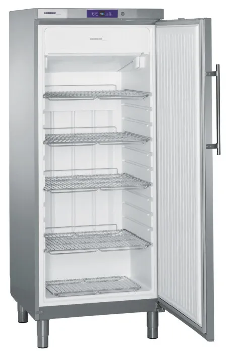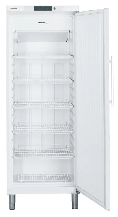 For the storage of frozen food products, the NoFrost forced-air freezers offer a practical and convenient solution. The shelf positions can be easily adjusted, allowing for variable use of the storage space. The temperature can be set to suit a wide range of storage requirements. These appliances meet the strictest demands on hygiene and food safety, and the 150mm adjustable legs allow for easy cleaning beneath the cabinets. All GGv models combine hot-gas defrost with the R 290 hydrocarbon refrigerant, making them particularly environmentally friendly and energy efficient.