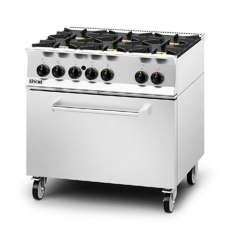 Picture of Lincat Opus 800 Natural Gas Free-standing Oven Range [Drop-Down Door] - 6 Burners - W 900 mm - 55.0 kW - OG8002/N/DD