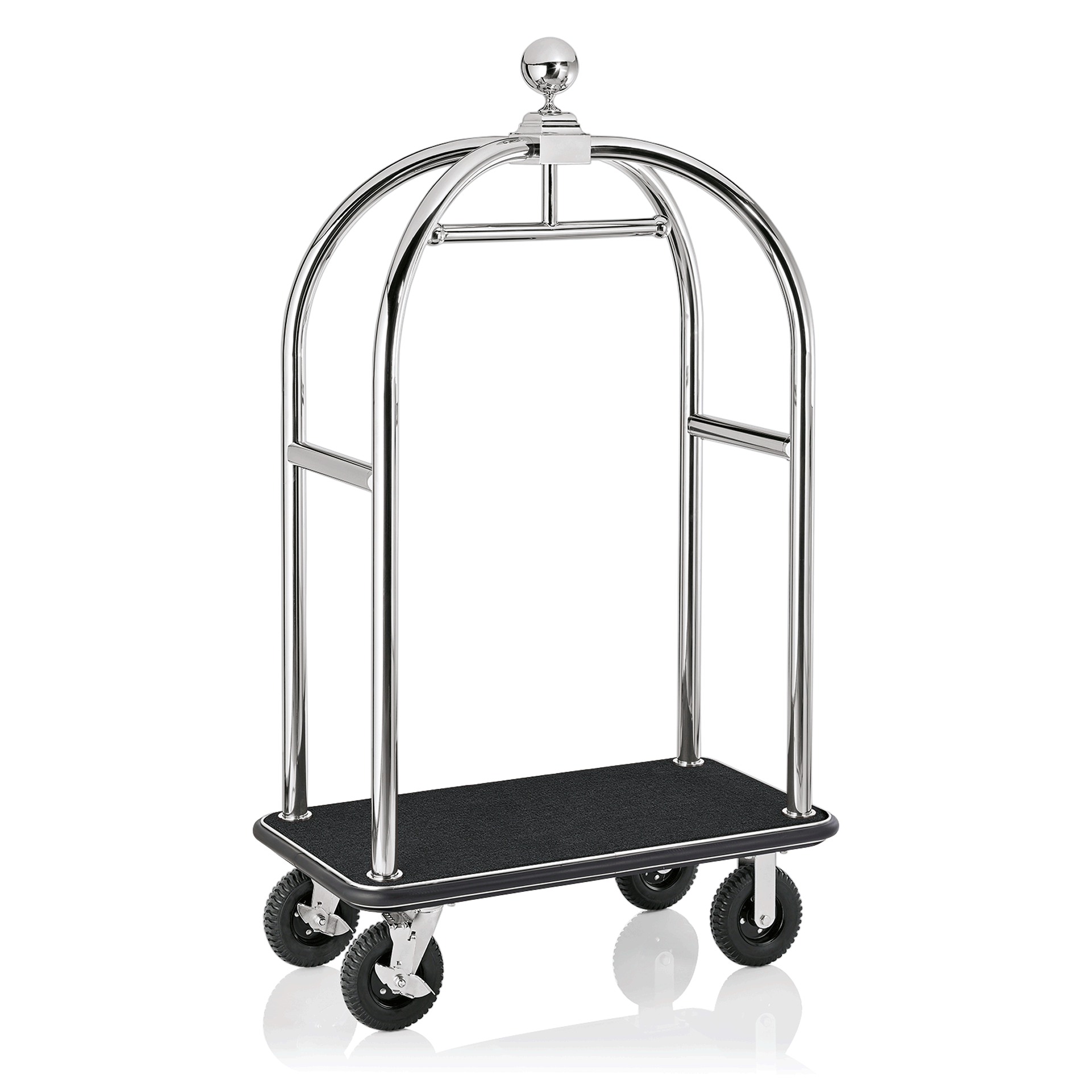 The product features a silver-colored design with two swivel castors, each measuring 20 cm in diameter, equipped with brakes for enhanced stability. Additionally, it includes two fixed castors for smooth maneuverability. The tubular frame has a diameter of 5 cm, providing robust support. An integrated coat rail adds functionality, while a rubber bumper encircles the structure for added protection.