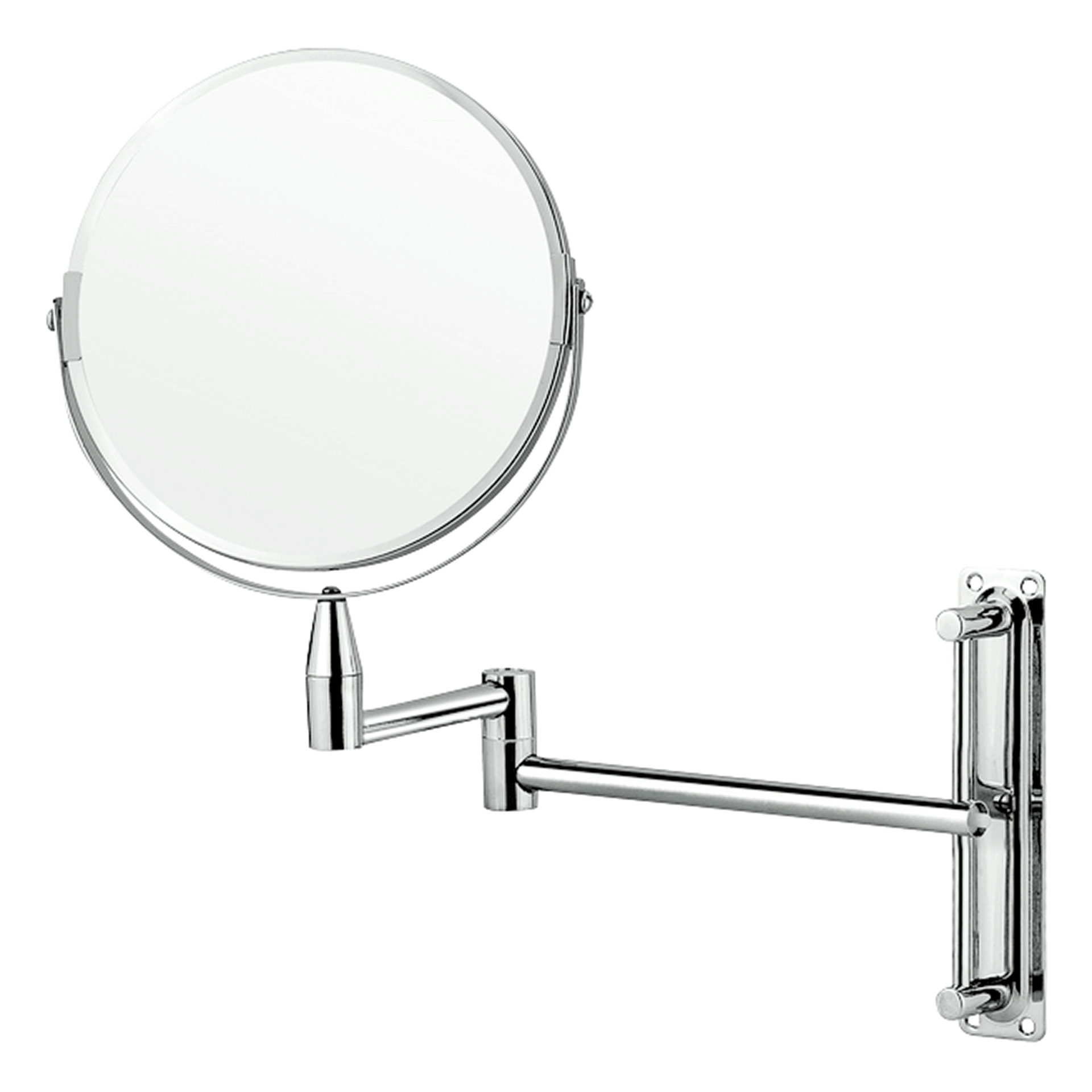 The wall-mounted mirror features a double swivel arm, allowing for flexible positioning to suit your needs. It offers both 1x and 3x magnification options, providing versatility for various grooming and makeup applications. The design ensures that the mirror can be easily adjusted to the desired angle, making it a practical addition to any bathroom or dressing area.