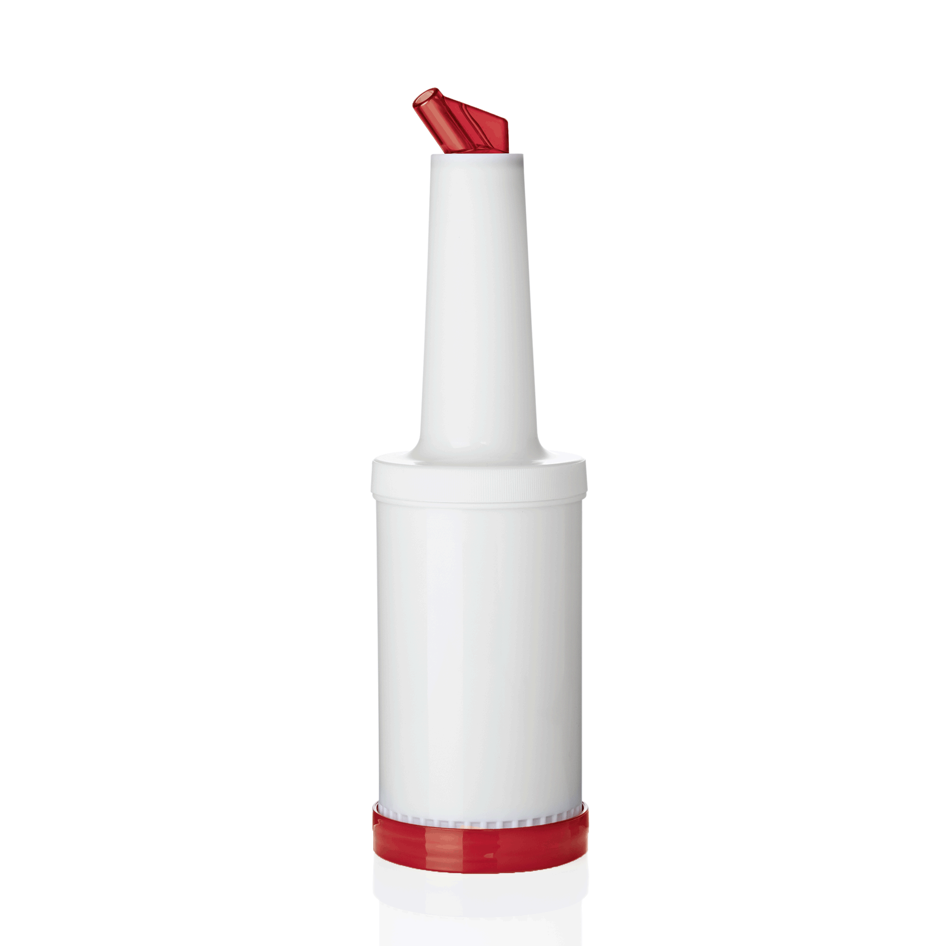 The product is a measured pourer and storage bottle featuring a removable base that serves as a lid for the storage container. It is a four-piece measured pourer and storage bottle, complemented by a two-piece storage container. This design ensures convenience and efficiency in both pouring and storing, making it an essential addition to your kitchen tools.
