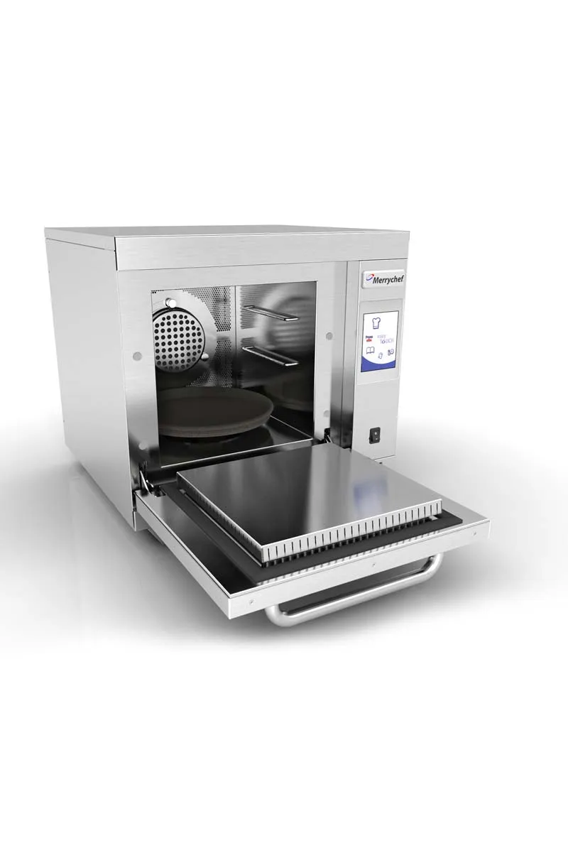 The E3 oven is one of the most versatile in the Merrychef range. The convection mode allows for up to three racks of cooking for baked goods, and its rotating turntable ensures even browning. It can then be switched to speed cooking in microwave mode when needed. The E3 oven delivers results up to six times faster than a conventional oven, with an absolute consistency that conventional ovens simply cannot provide. Cooking requirements for new menu options can easily be programmed via the MenuConnect system, allowing everyone to cook everything perfectly, every time. We offer a 12-month parts and labor guarantee on every Merrychef E3 oven we sell.