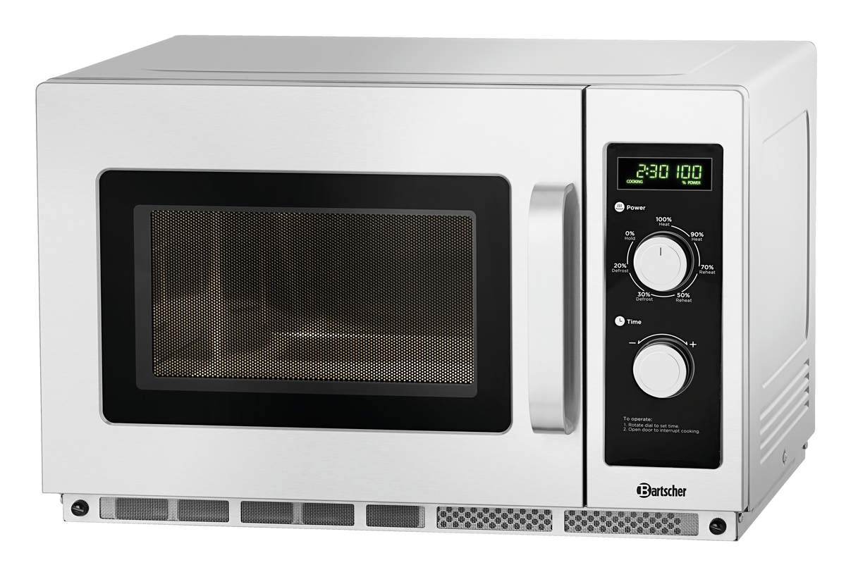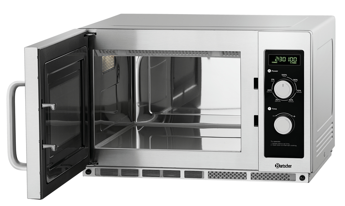 The extra-large cooking chamber of this microwave features a ceramic floor, ensuring even heating. This is regulated by the six stages of the 1800 W microwave output. In addition to the regulation of the output, the heating and defrosting of food can be controlled using the timer.