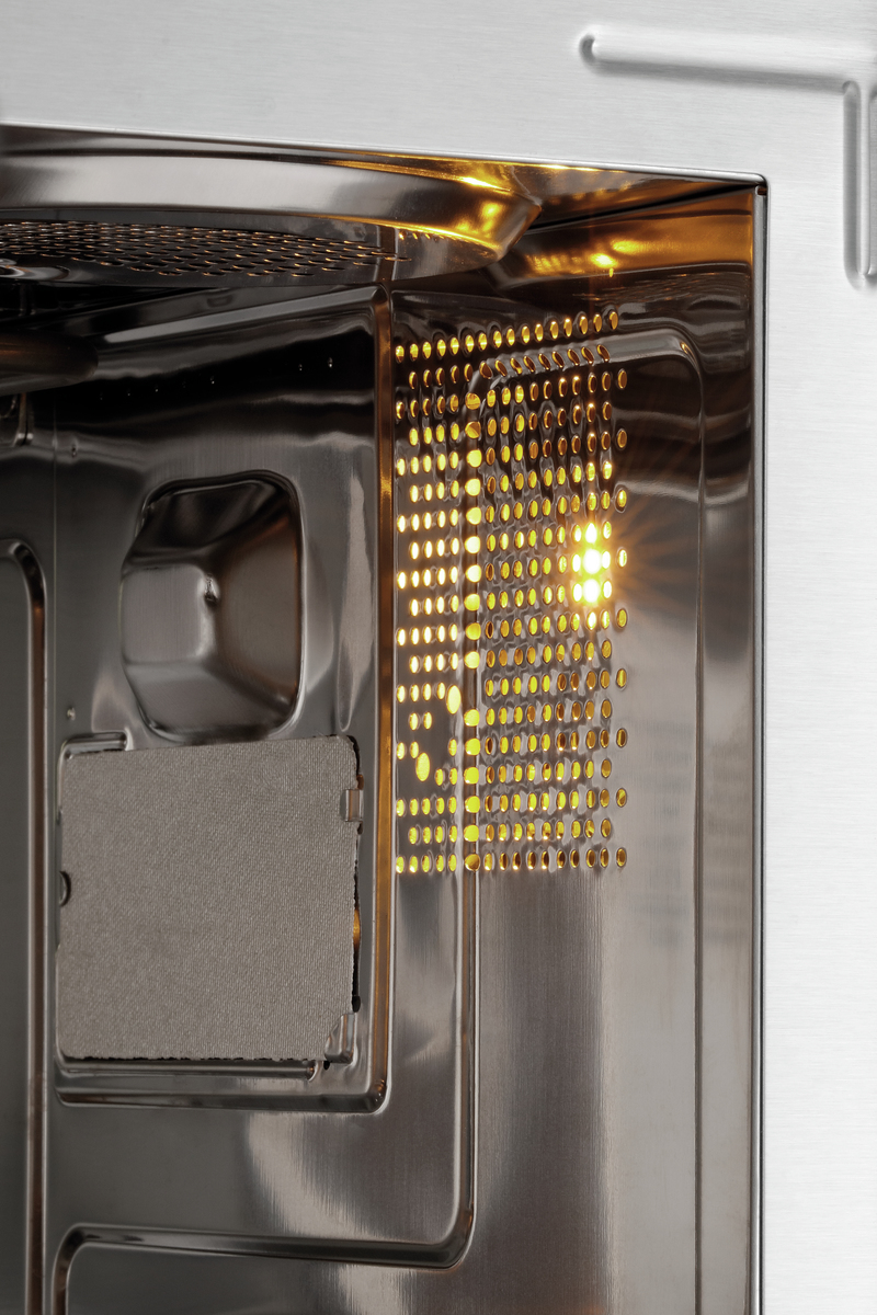 The microwave, equipped with additional hot air and grill functions, provides a wide range of options for food preparation. Users can individually set the time and power according to the specific function required.