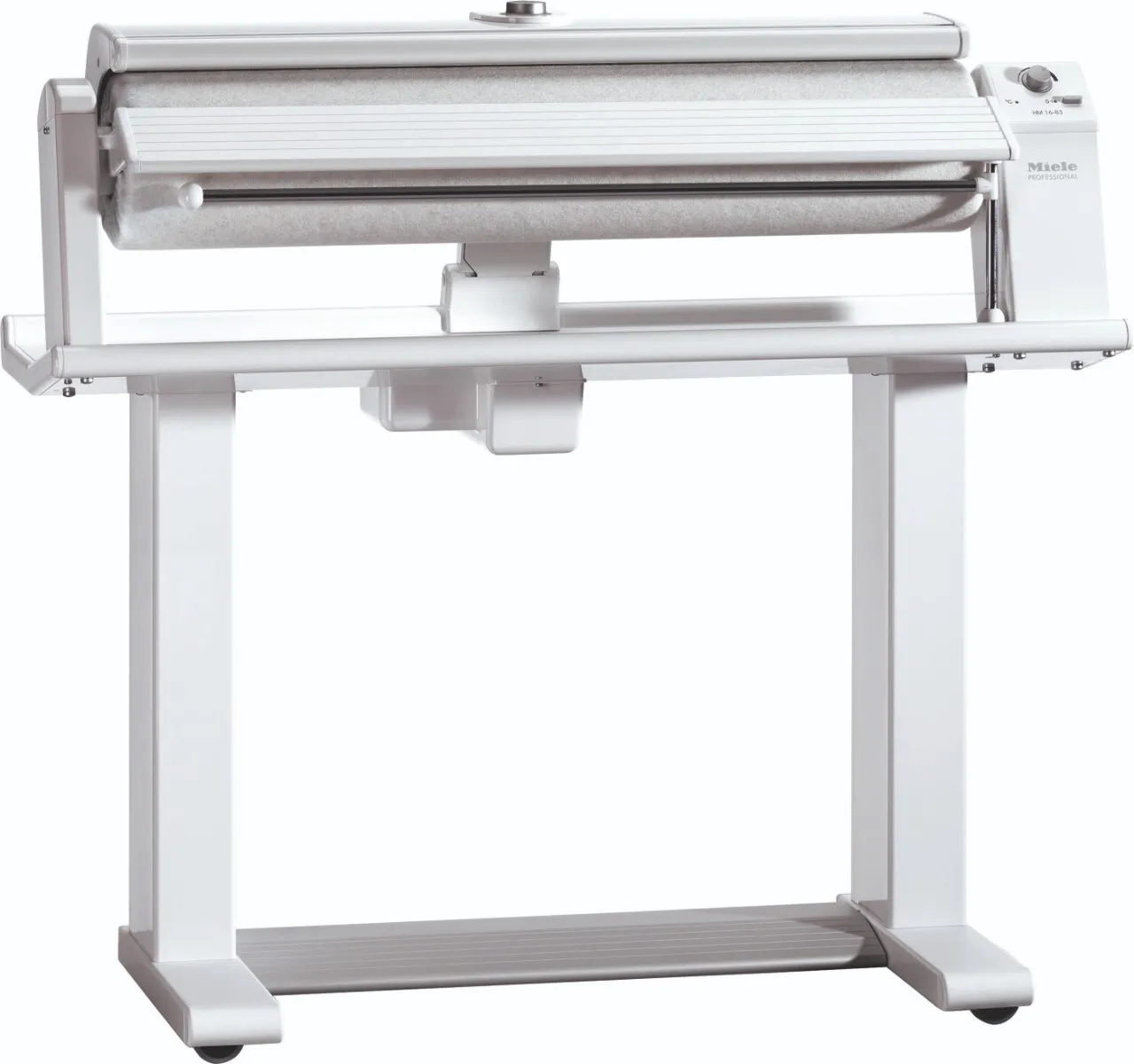 The Miele HM 16-83 Rotary Ironer is a professional unit designed to deliver exceptional ironing results for various laundry needs. It is ideal for ironing uniforms, jackets, and beddings, making it suitable for business use as well as everyday tasks. The ironer features a variable roller speed, allowing users to work at their own pace. Additionally, its design accommodates seated usage, helping to prevent fatigue during operation.