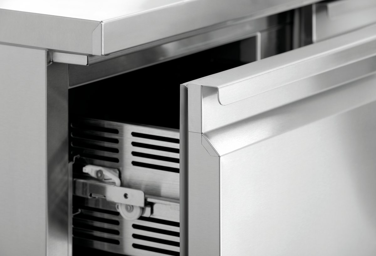 The four chilled drawers of this mini refrigerated counter can be used to store food with or without GN containers up to 1/1 GN. The dishwasher-safe stainless steel filter and easily accessible technology unit enable easy, regular maintenance and therefore ensure a long lifetime.