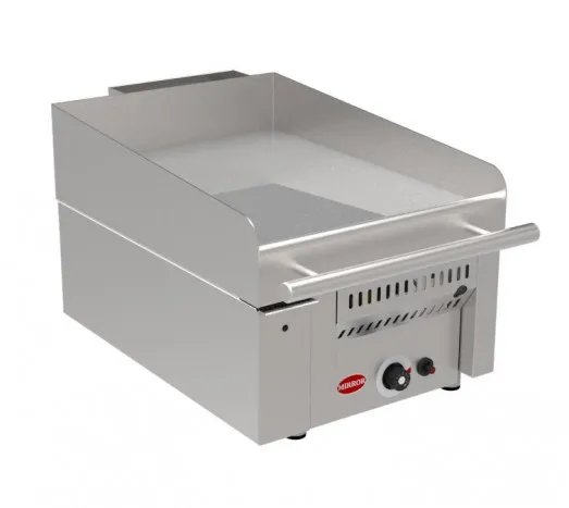 Mirror Zone 1 is a thermostatically controlled heavy-duty chrome griddle, ideal for fast food operators, mobile trailers, and front-of-house cooking. The hard-chromed plate finish is non-porous, preventing cross-flavor contamination. It reduces heat radiation, thereby lowering fuel costs, and ensures even heat distribution. Additionally, it is easy to clean, making it a practical choice for busy cooking environments.