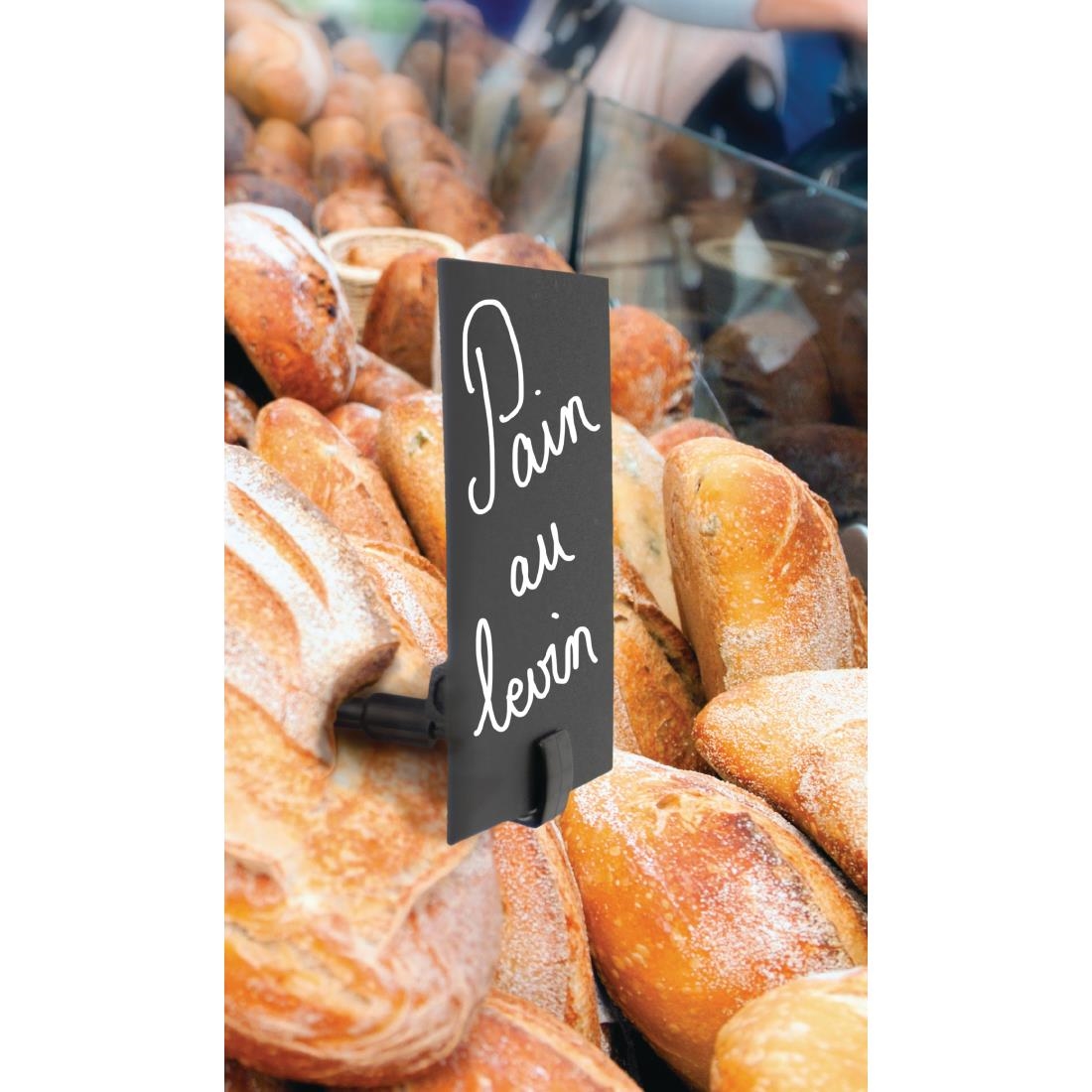 Mini chalkboard tags are perfect for labeling food displays, table numbers, or pricing. Each set is supplied with four spikes, two stands, and a liquid chalk marker. Spare tags and holders are sold separately.