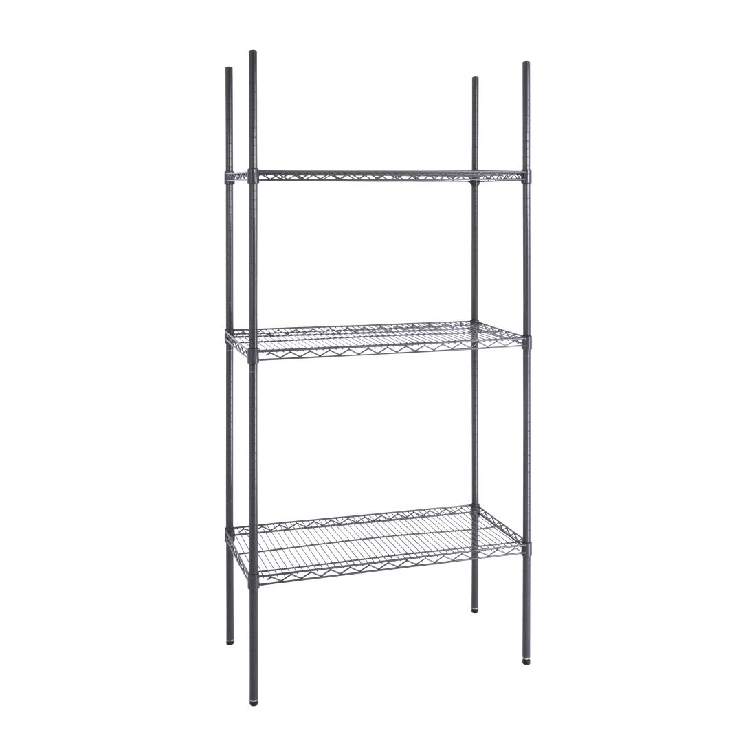 Expand your storage with the versatile 3-tier storage shelving unit from Nisbets Essentials. Designed to be hard-wearing and highly durable, the shelving provides plenty of storage capacity, supporting up to 220kg across the three shelves. With its ultra-strong steel core and charcoal epoxy coating, the storage is highly resistant to environmental demands. You can confidently position it in your steamy kitchen, humid cold room, or cold outbuildings, assured that it will maintain its strength.