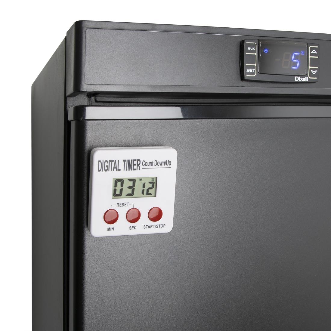 With its fold-out stand and rear magnet, this countdown timer from the Nisbets Essentials collection can be used anywhere. Place it on your work surface, or attach it to a nearby appliance. No matter where it is, the large digital display is always clear and easy to read.