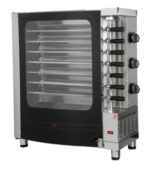 The North R7 Countertop Electric Churrasco Grill, also known as a Brazilian grill, offers an exciting "front of house" cooking experience. It is specifically designed for cooking skewered meat cuts, chicken, and meat joints. With its compact footprint, it is ideal for establishments looking to introduce this unique cooking method to their menu while engaging their customers.