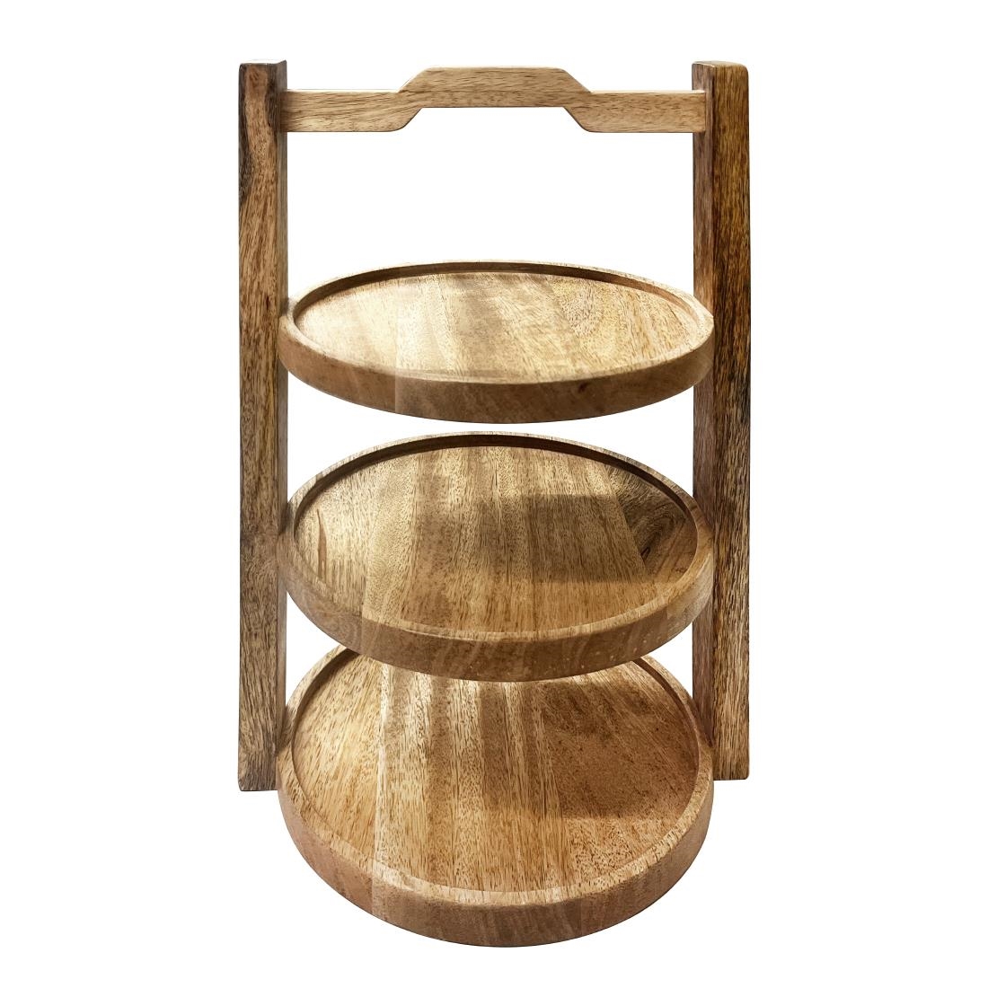 Enhance your buffet presentation with this 3-tiered plate stand from Olympia. Designed to accommodate 200mm plates, the stand offers a practical way to create multiple layers and maximise space on your display. Crafted from natural mango wood, its warm finish beautifully complements vibrant ingredients and adds rustic charm to any setting. The easy-to-clean design ensures a seamless rotation of fresh dishes during busy service times.
