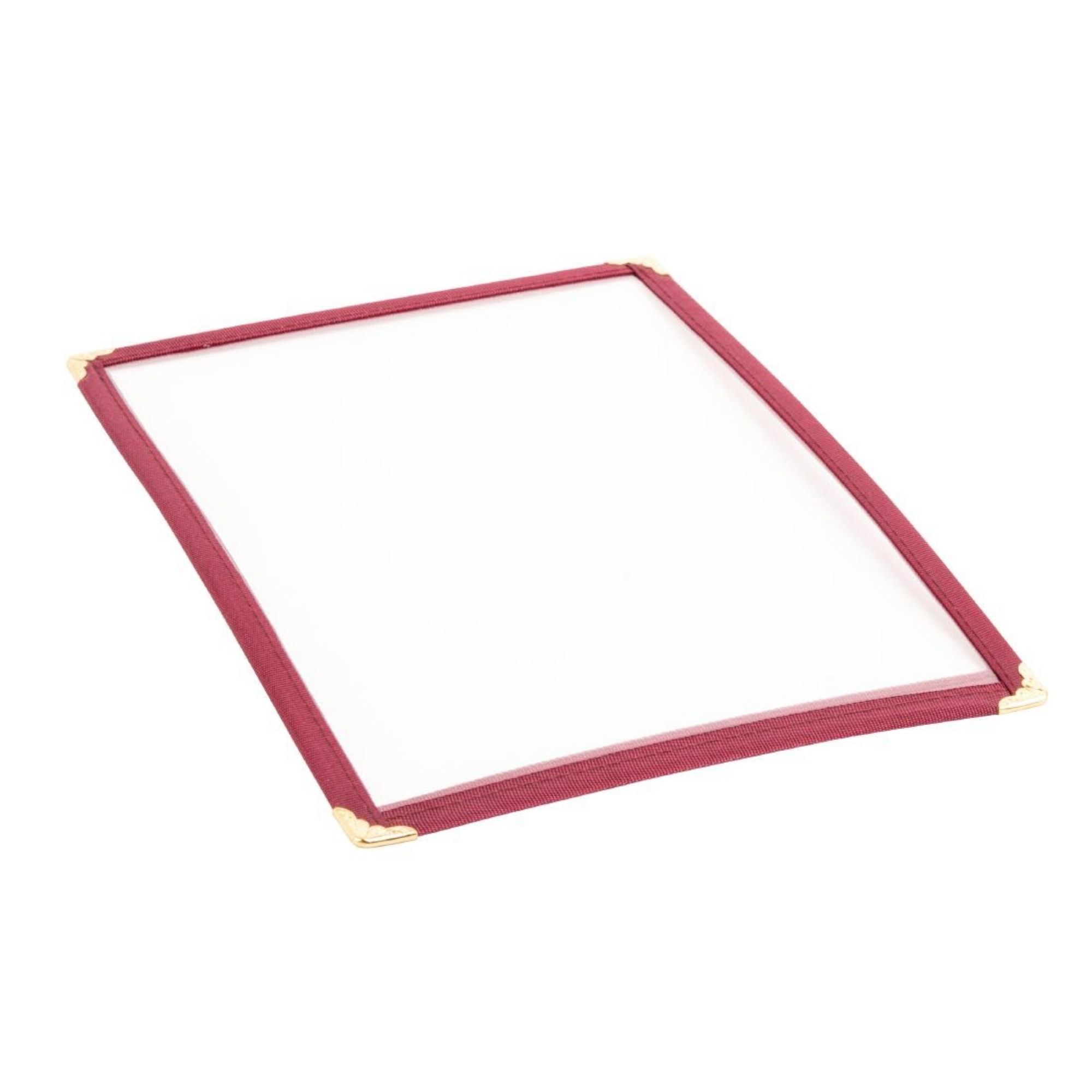 Help your menus stand out with these richly burgundy-toned American menu covers. Each single panel, double-sided menu features smart material edging, which is reinforced with contrasting gold-colored metal corners and provides two clear windows for viewing your food lists. Ideally suited to theme restaurants and a range of pubs and cafes, these simple and attractive menu covers are available in A5 and A4 sizes.