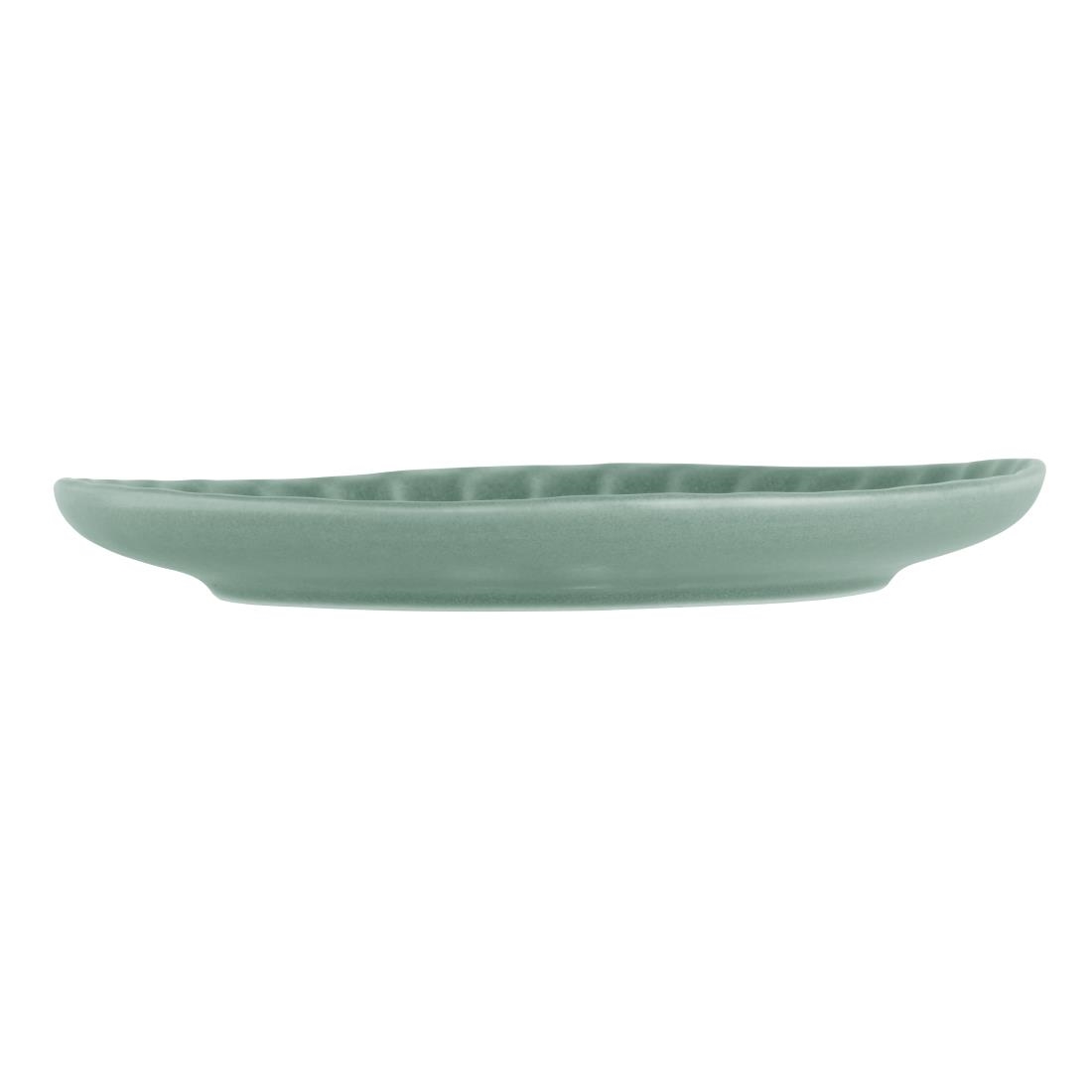 Tapping into the industrial trend's use of natural materials, the plates are finished in a green colourway that captures the trend's contemporary appeal and organic warmth. The undulating fossil-inspired pattern adds the finishing touch, helping to frame your dishes - ideal for more experimental dishes that call for a bold backdrop to tie them together. Finished with an imperfect, rustic shape that captures the relaxed feel of handmade artisan pottery, and a flat base that gives you a wide canvas to get creative with when plating, this is crockery for the creative chef.