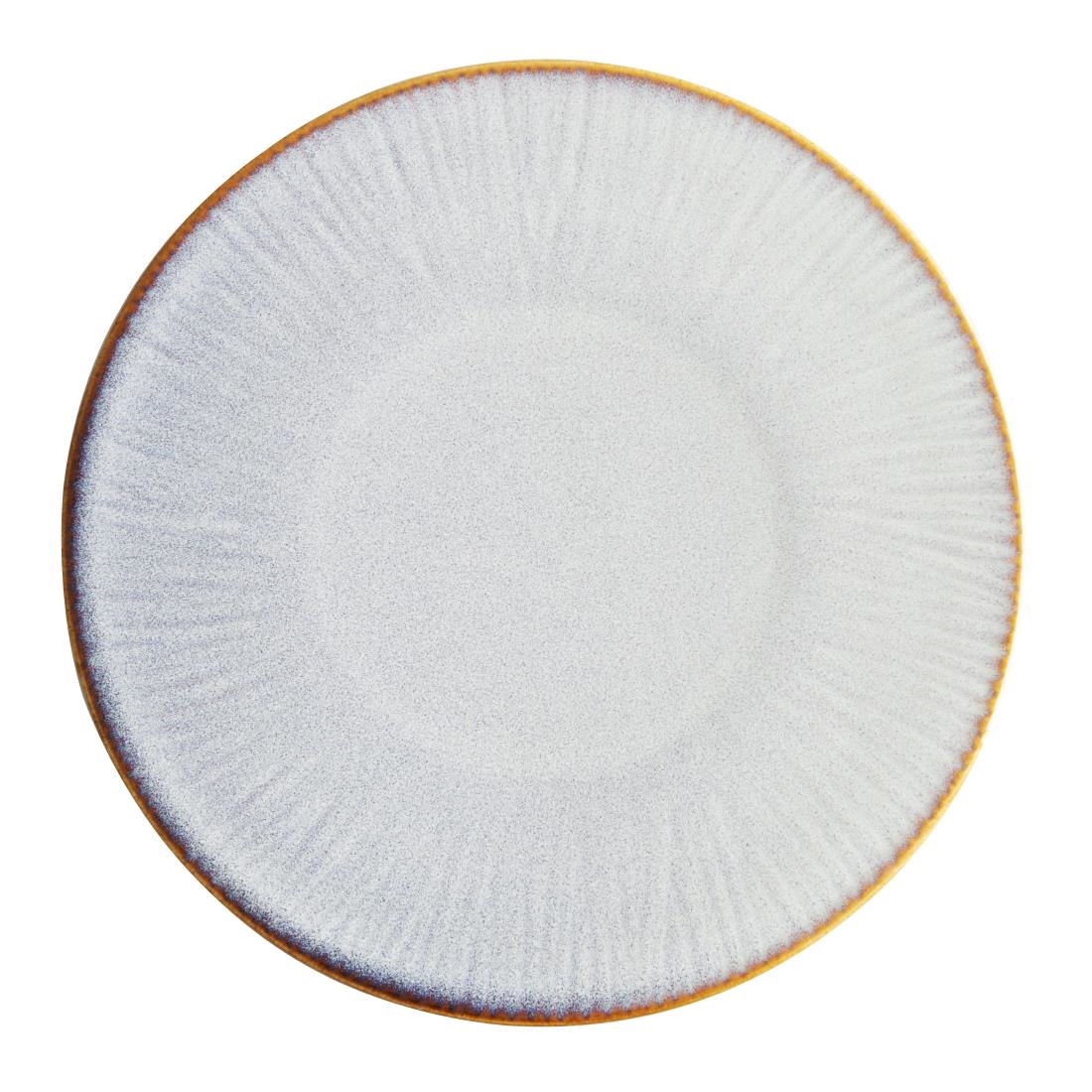 These Drift embossed coupe plates feature a sleek pale grey reactive glaze and a contrasting rim that not only adds a touch of style but also shapes the plate perfectly. Crafted from porcelain, the plates are covered by a lifetime edge-chip warranty for added strength and durability.