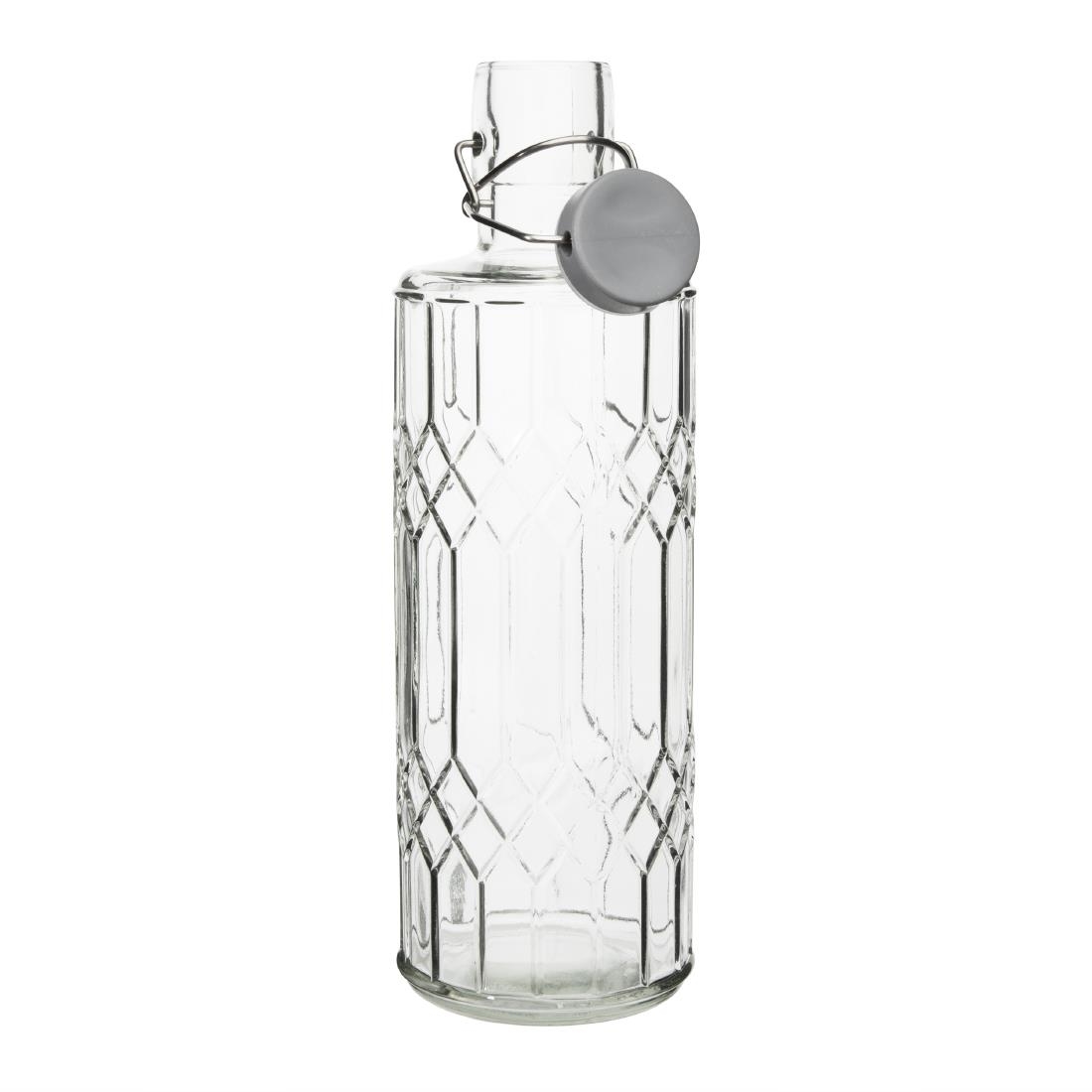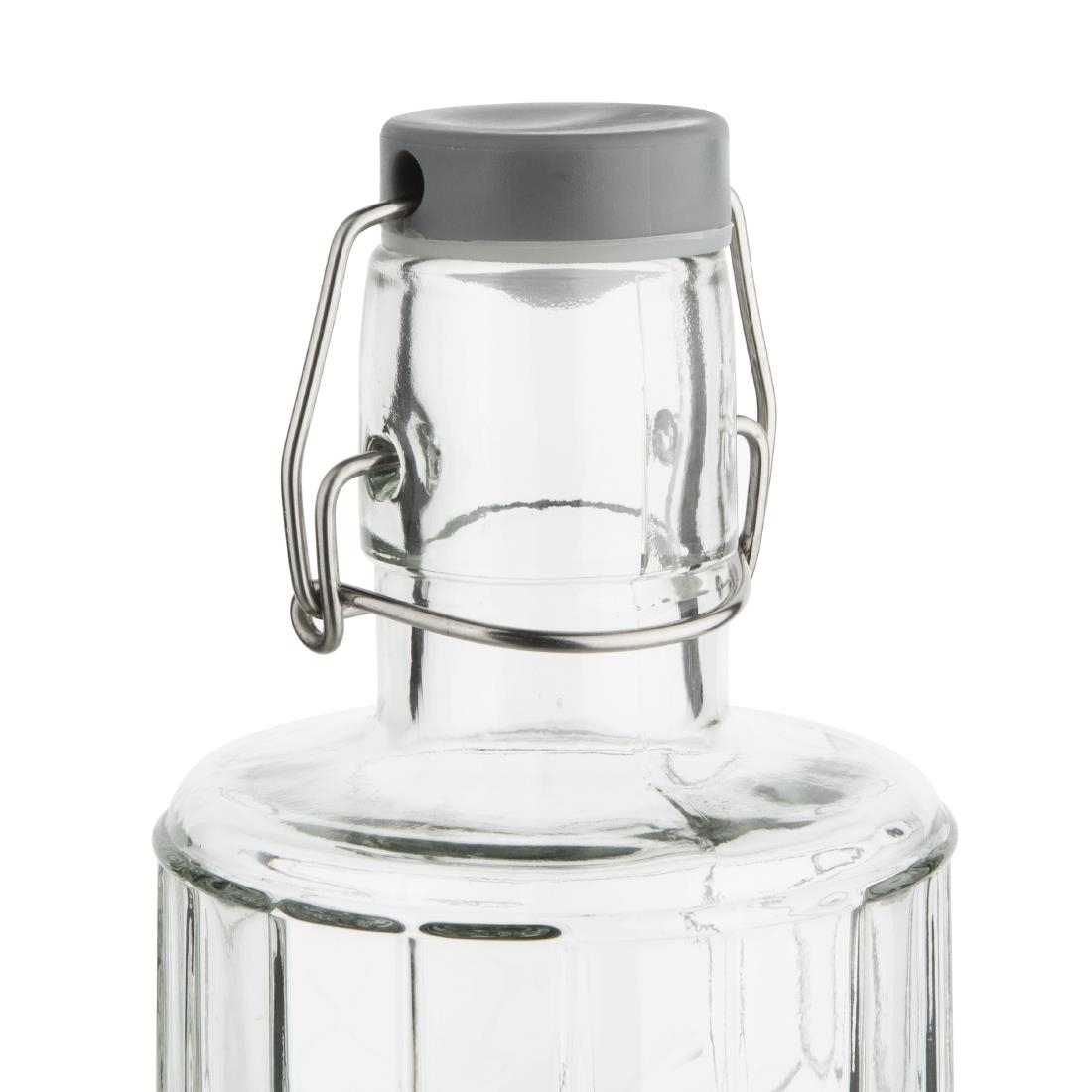 Introducing Olympia's glass water bottle. Featuring an airtight seal, this 1-liter bottle is able to keep its contents fresher for longer while protecting from contamination. Being easy and quick to use, this bottle does not require the strength or exertion that jar lids do, making the opening and closing of this bottle simple and safe for all.