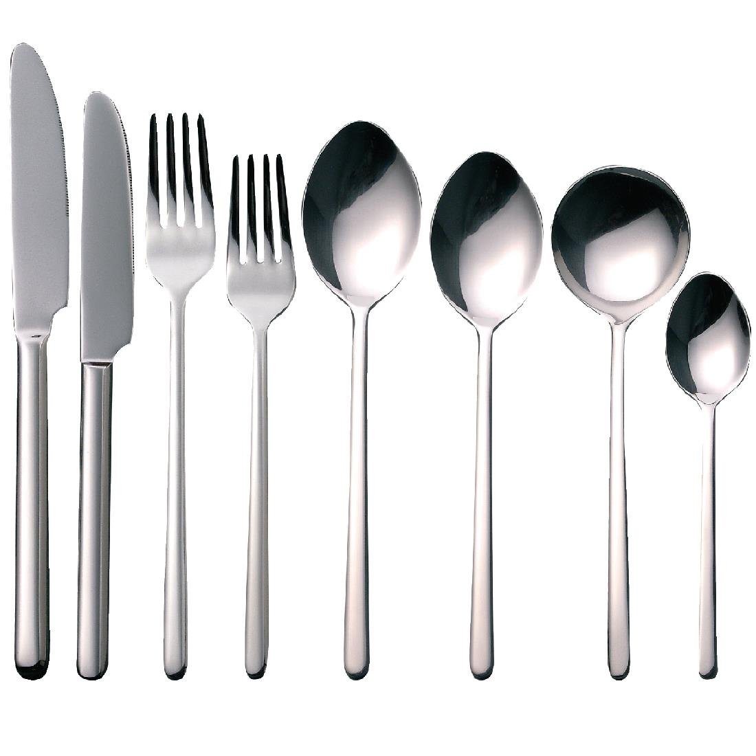 The product is crafted from highly polished 18/0 stainless steel, offering a beautifully weighted and balanced design. It features a slim handle design, providing both elegance and functionality. This item is sold in dozens.