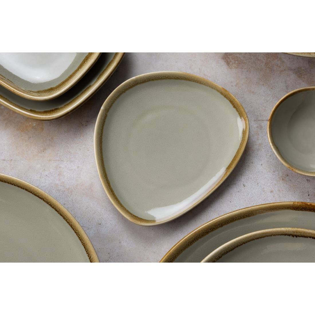 The finish and colour of moss is perfectly suited to restaurants that serve rustic, delicious, homemade food. The Kiln collection from Olympia uses a glaze that interacts with the naturally occurring minerals within the clay, creating a finish that is unique to your plate. Artisans paint around the rim with a finish that has been specially developed to create slight runs and irregular patterns, making imperfections a part of the character of the plate.