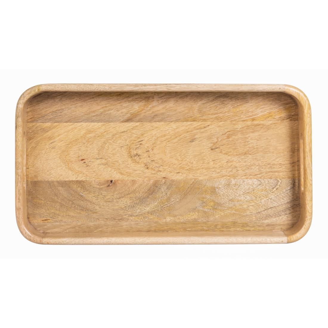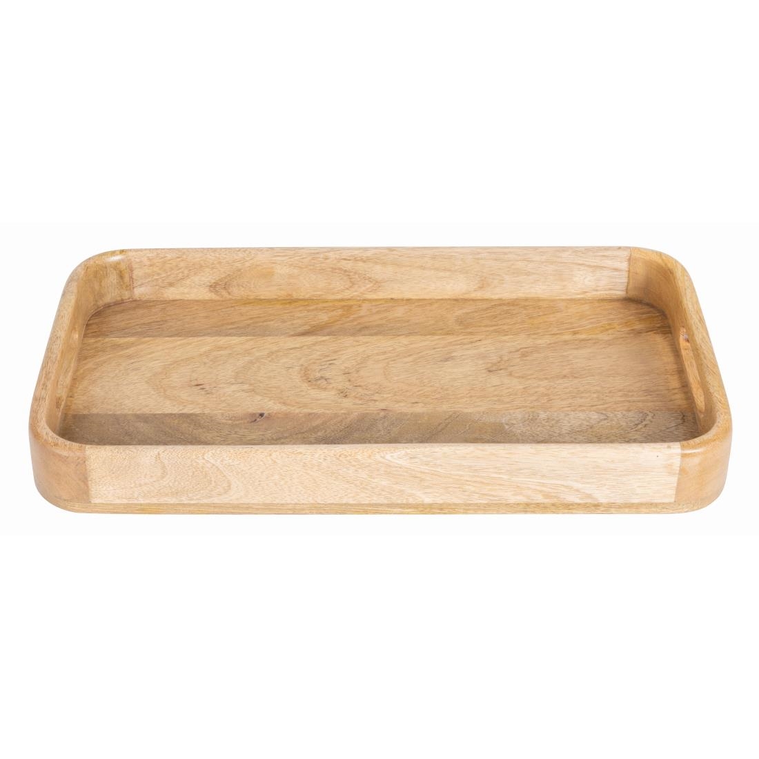 Serve with style using this rectangular mango wood serving tray from Olympia. The natural grain and warm tones of mango wood add a charming, rustic touch that highlights vibrant ingredients and dishes. Designed with high sides and built-in carry handles carved right into the wood, this 430x230mm rectangular tray makes carrying and serving easy and secure. Its strong, durable construction means it's perfect for everything from buffet displays and room service to casual serving at the table.