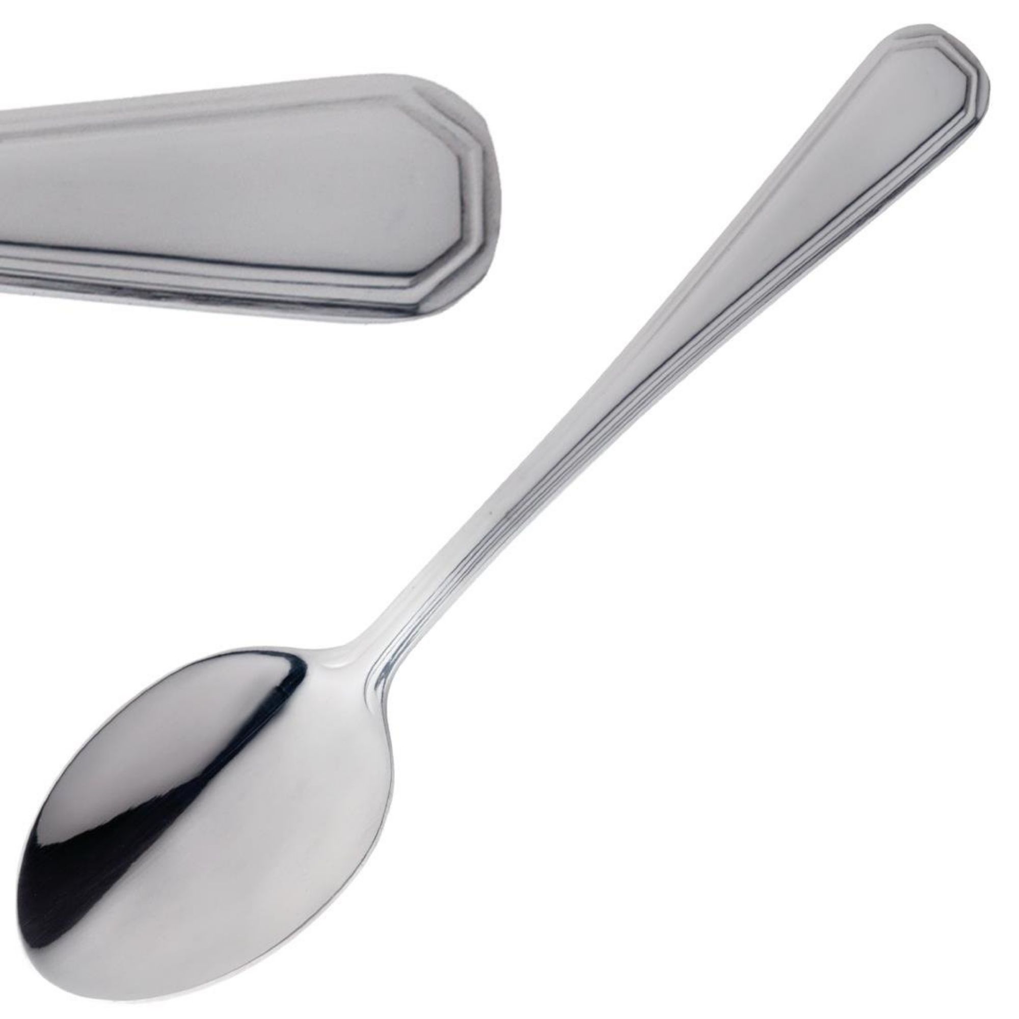 Elegant 18/0 high polish finish stainless steel with a double-edge stepped handle design.
