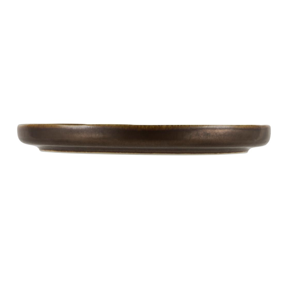 Metallic bronze-effect crockery with an imperfect handmade-look shape.