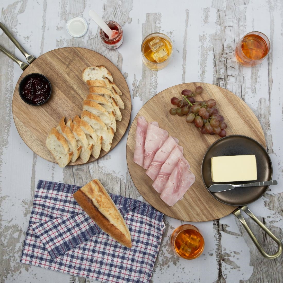 Add a natural, rustic charm to your food presentation with this wooden paddle board from Olympia. Featuring a round shape and a convenient metal handle, the board makes carrying and presenting dishes effortless. Ideal for serving a variety of foods, including sandwiches, pastries, canapés, and small portions of main courses, it's a versatile addition to any dining setup. Crafted from durable acacia wood, the board measures 356 x 505mm, offering ample space for showcasing your culinary creations.