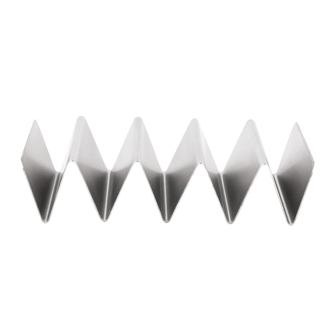 Serve up a fiesta of flavor with this taco holder from Olympia. Made from stainless steel, the holder's sturdy construction ensures your taco creations stay upright and will also prevent their contents from spilling. Ideal for any professional kitchen or street food vendor, the taco holder is dishwasher safe for easy and convenient cleaning.
