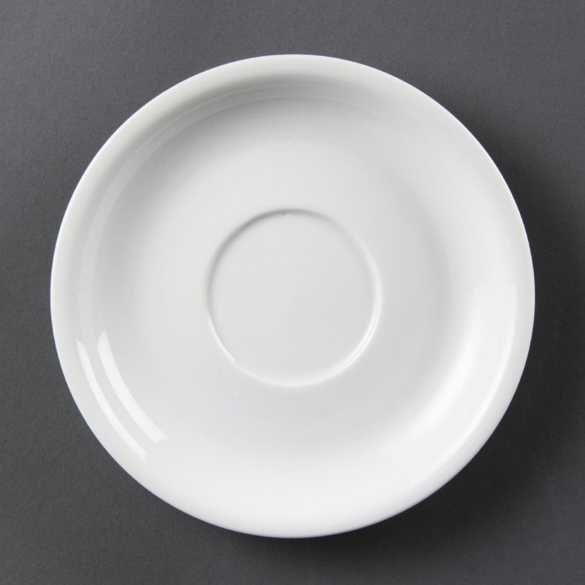 Our great value pure white porcelain cappuccino saucers by Olympia are fully vitrified for heat and shock resistance. They are the ideal crockery for hotels that desire simplicity.